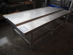 S/s table, dimensions: 2700 mm x 1350 mm x 850 mm. Missing plastic worktops.14 bidsLot is closed