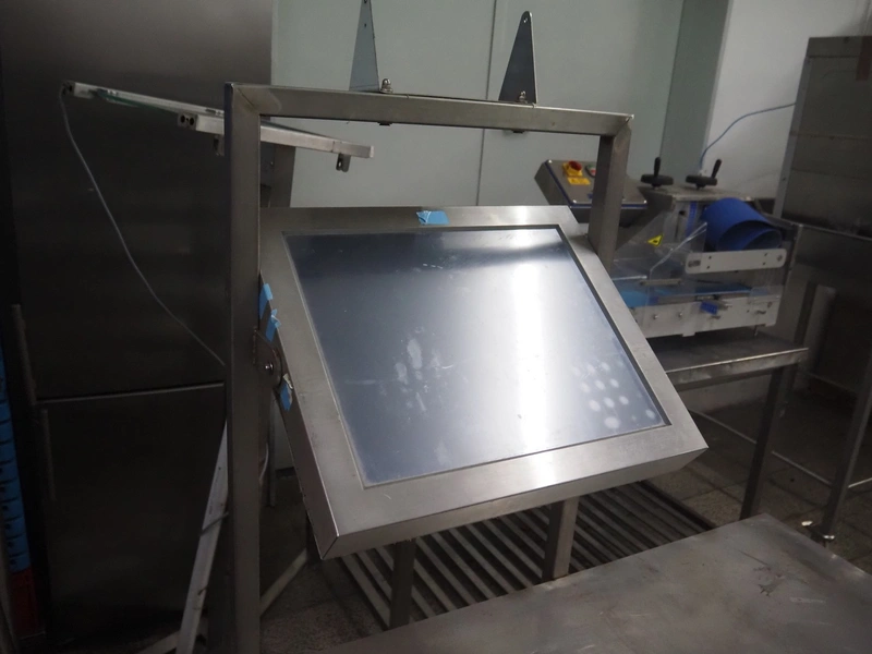 Work station with s/s top and frame, top dimensions: 1000 mm x 600 mm, total dimensions: 1000 mm x 650 mm x 1700 mm.