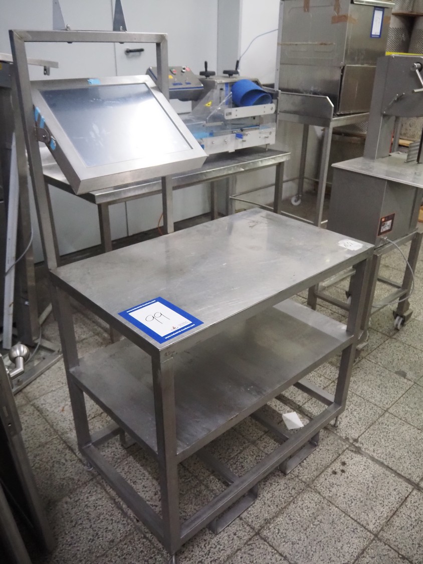 Work station with s/s top and frame, top dimensions: 1000 mm x 600 mm, total dimensions: 1000 mm x 650 mm x 1700 mm.