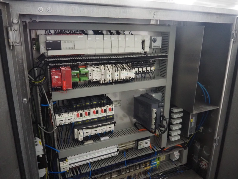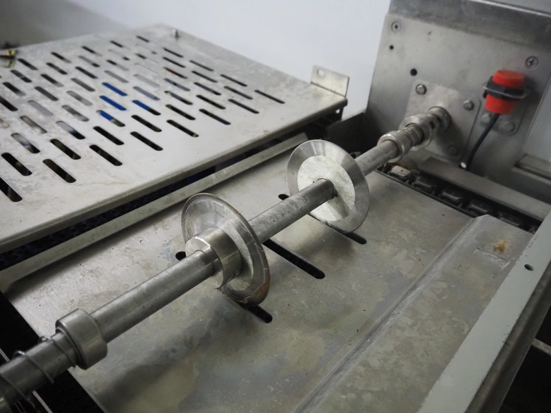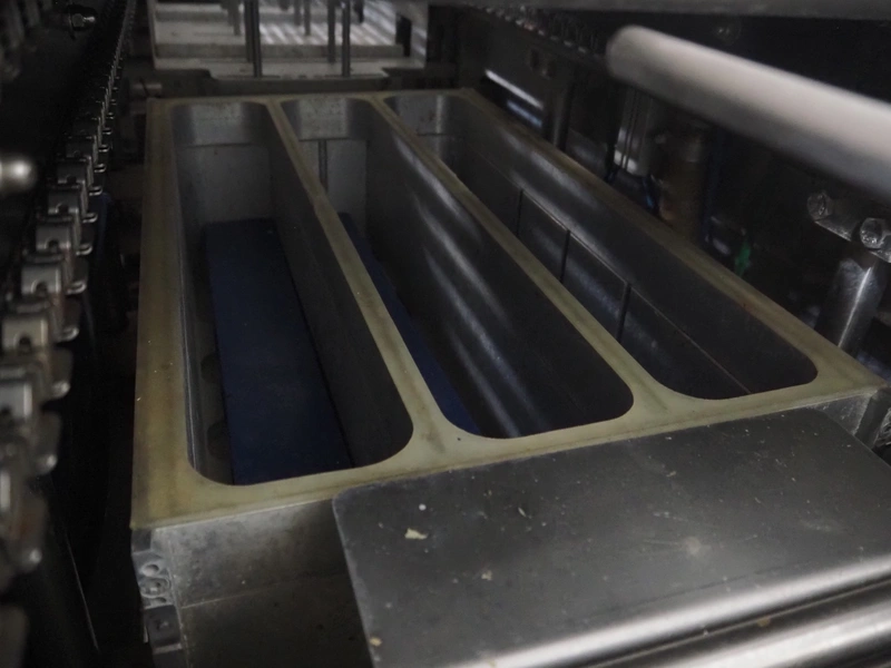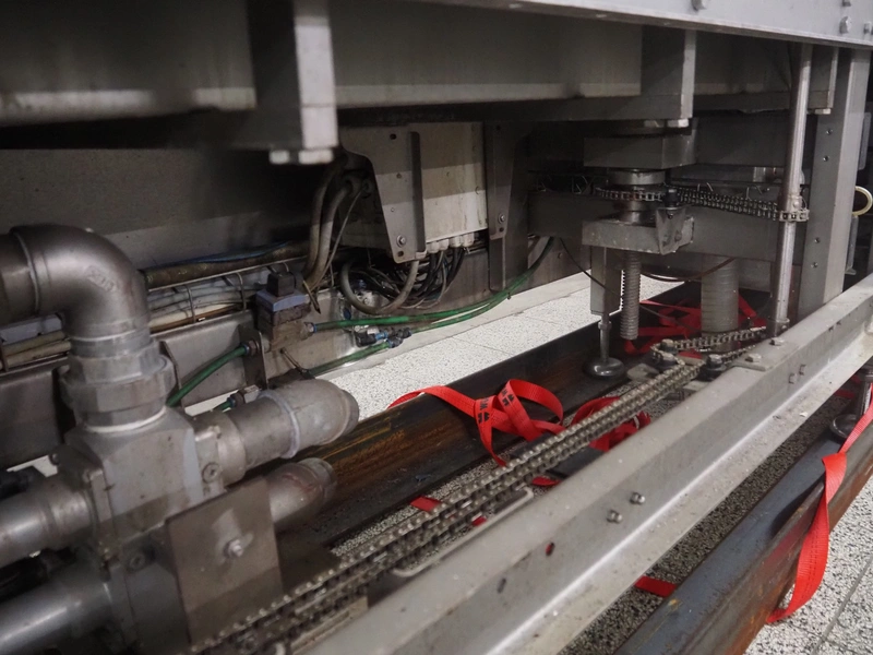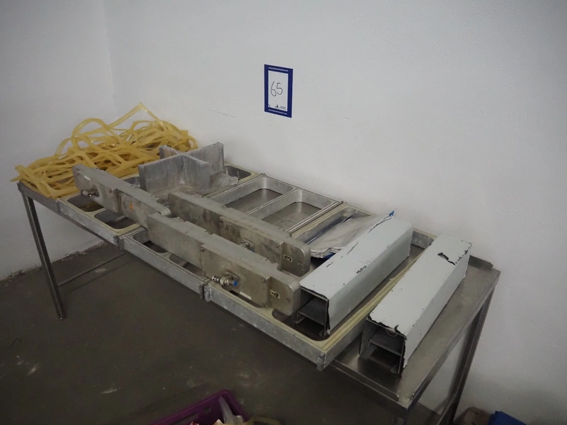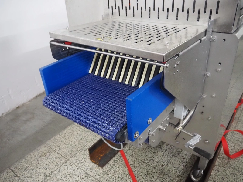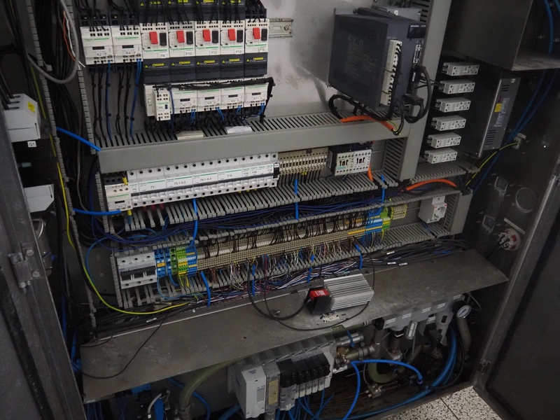 Webomatic thermoformer, type: ML 7100, serial number: C6513WL651, 400 V, 3 Ph, 50 Hz, film width: 430 mm, dye: (3x) 674 mm x 103 mm, total dimensions: 7550 mm x 1050 mm x 2100 mm. Including extra parts and suction device for rest film, dimensions: Ø 500 mm x 1100 mm. Without vacuum pump.