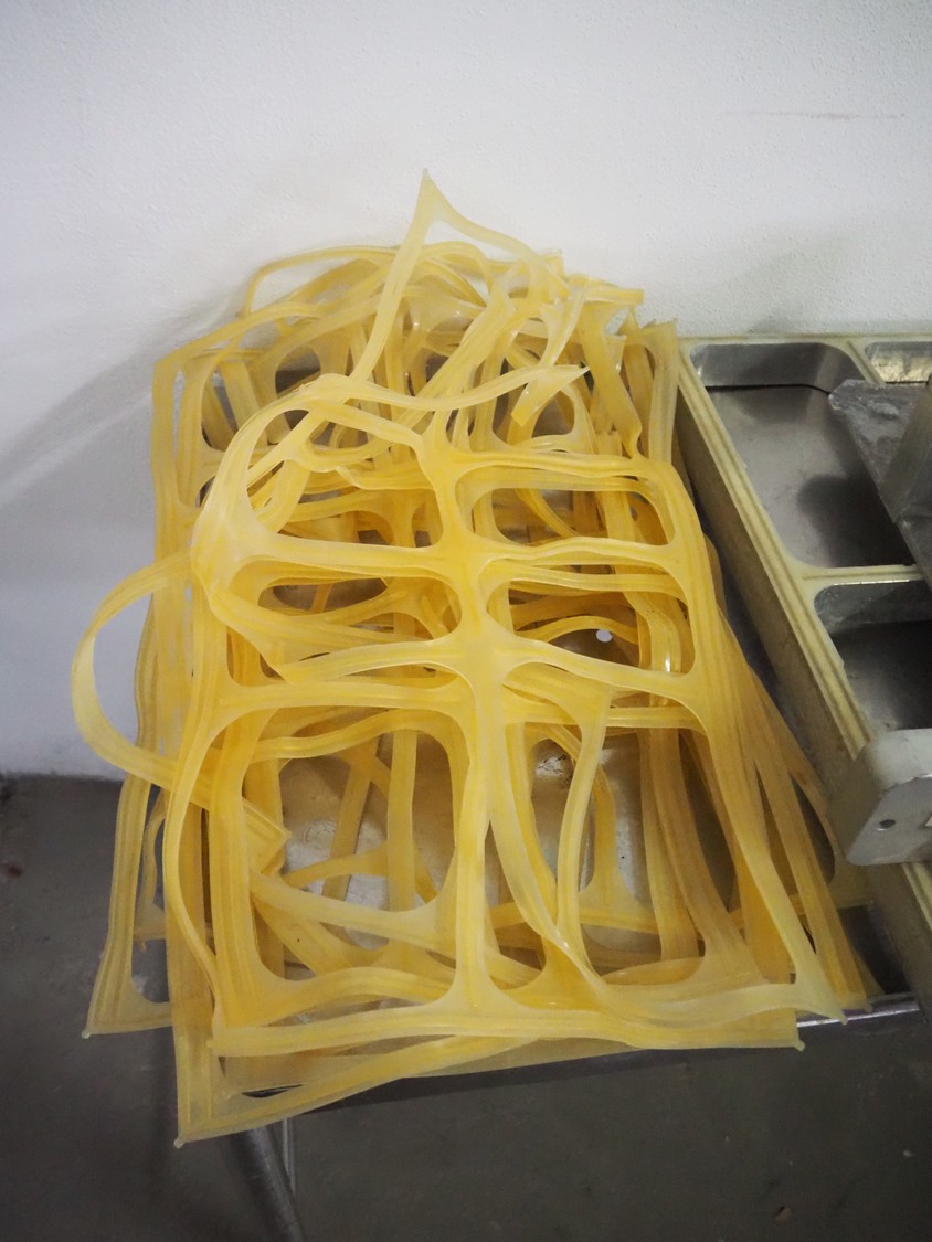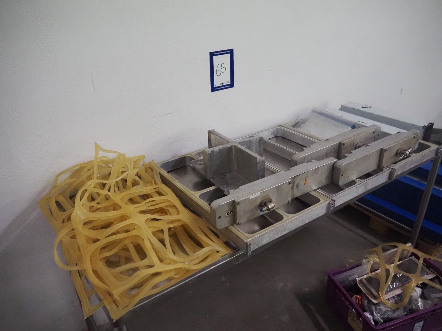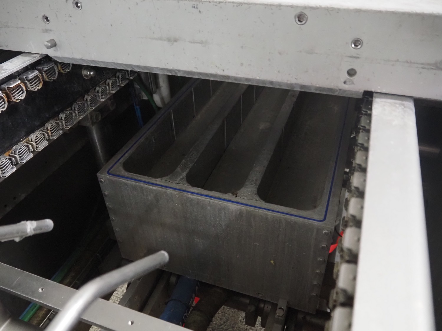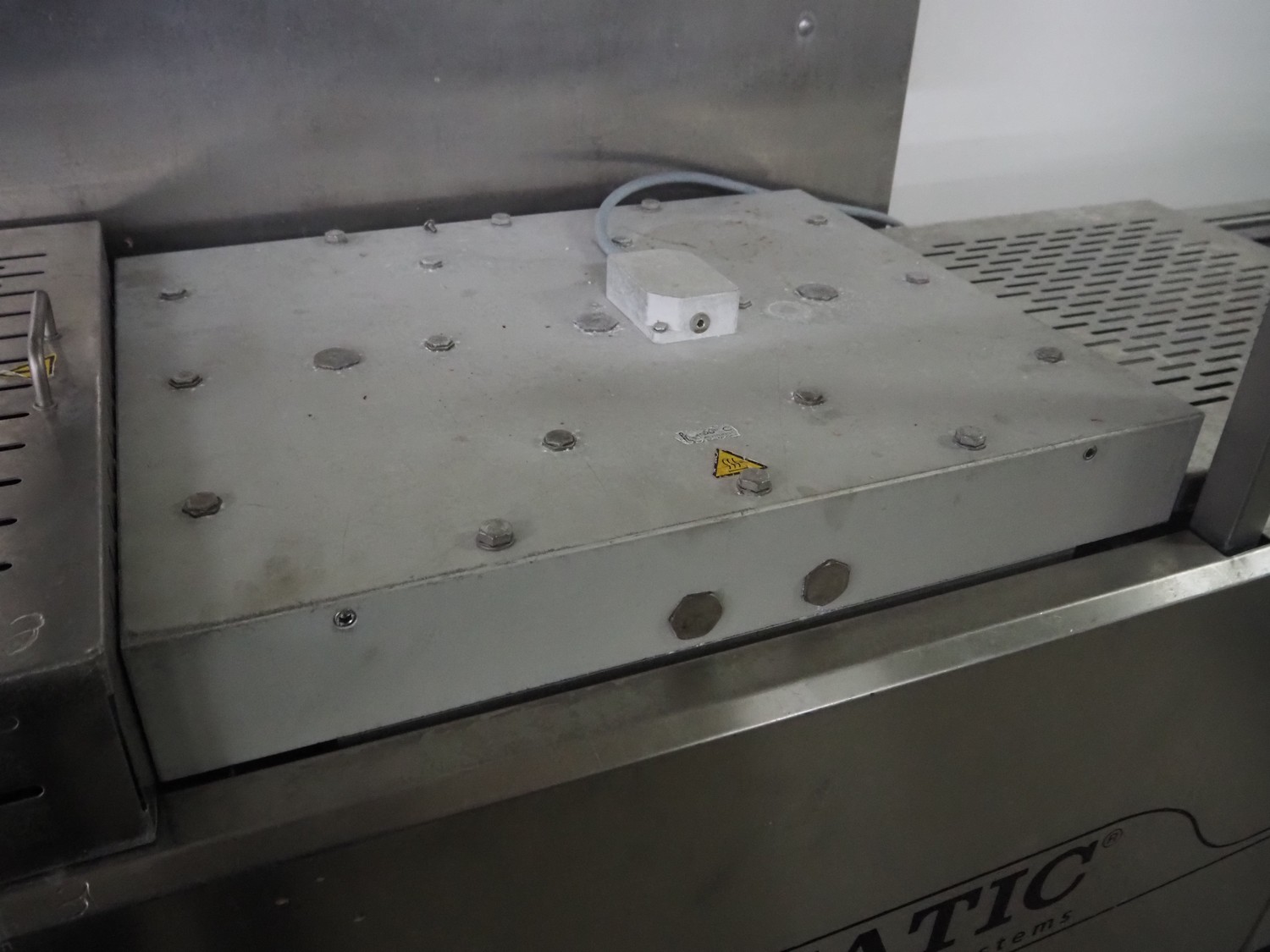 Webomatic thermoformer, type: ML 7100, serial number: C6513WL651, 400 V, 3 Ph, 50 Hz, film width: 430 mm, dye: (3x) 674 mm x 103 mm, total dimensions: 7550 mm x 1050 mm x 2100 mm. Including extra parts and suction device for rest film, dimensions: Ø 500 mm x 1100 mm. Without vacuum pump.