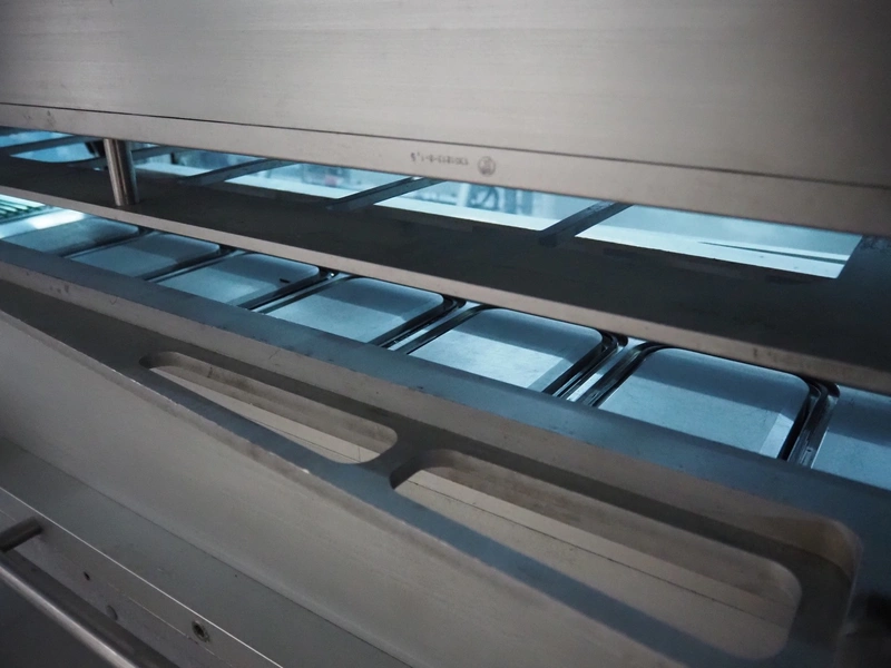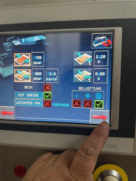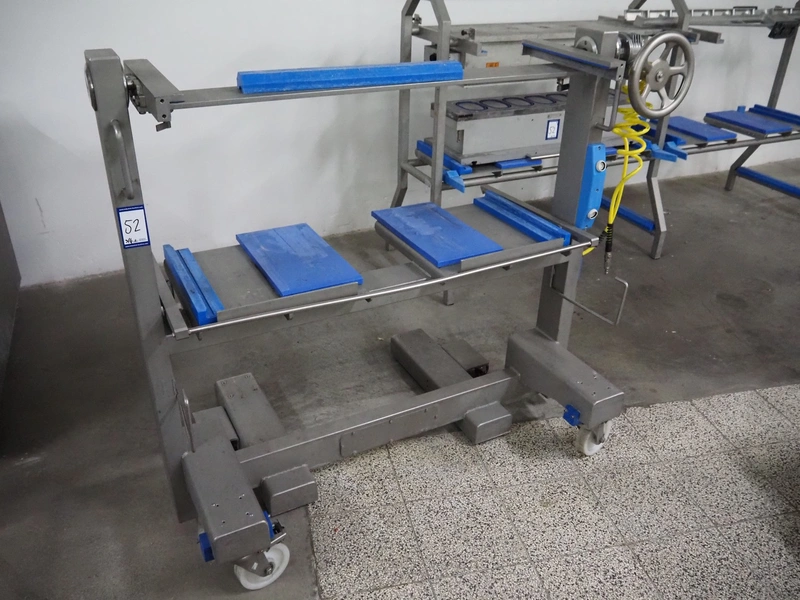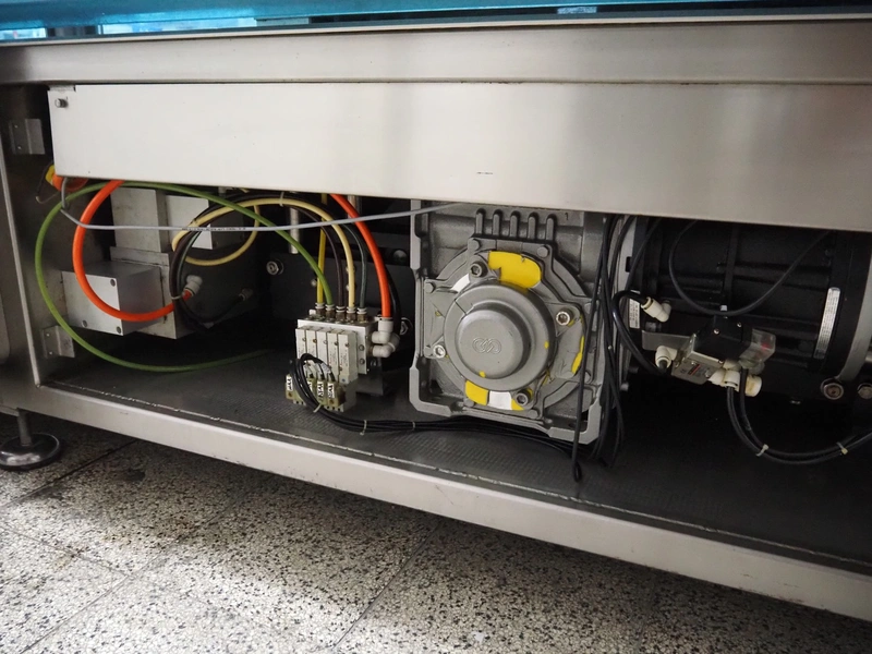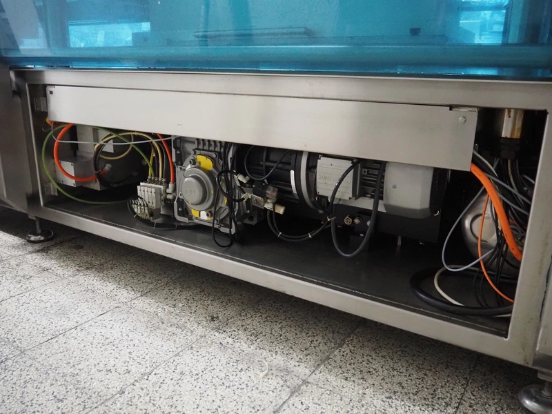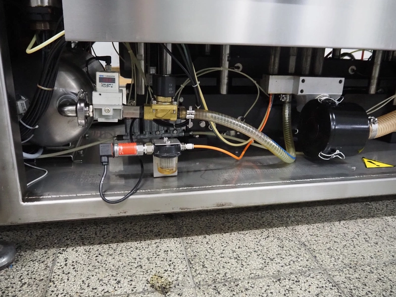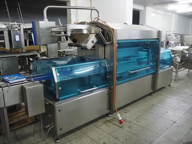 Ulma traysealer, type: Scorpoius-1000, serial number: 7700004, year of construction: 2009, 400 V, 50 Hz, 27 A, 14 kW, dye: (6x) 190 mm x 140 mm, plastic belt, belt width: (2x) 115 mm and (1x) 300 mm, plastic string belt, belt width: 200 mm, total dimensions: 4335 mm x 1140 mm x 2166 mm. Including Becker pump vacuum pump, model: U 4.250SA7K-54, number: F 2567251, year of construction: 2011, 244/276 m³/h, dimensions: 1100 mm x 550 mm x 450 mm, trolley with parts, dimensions trolley: 1650 mm x 950 mm x 1350 mm and rack for dyes, dye: (7x) 160 mm x 100 mm, dimensions rack: 2750 mm x 750 mm x 1400 mm.