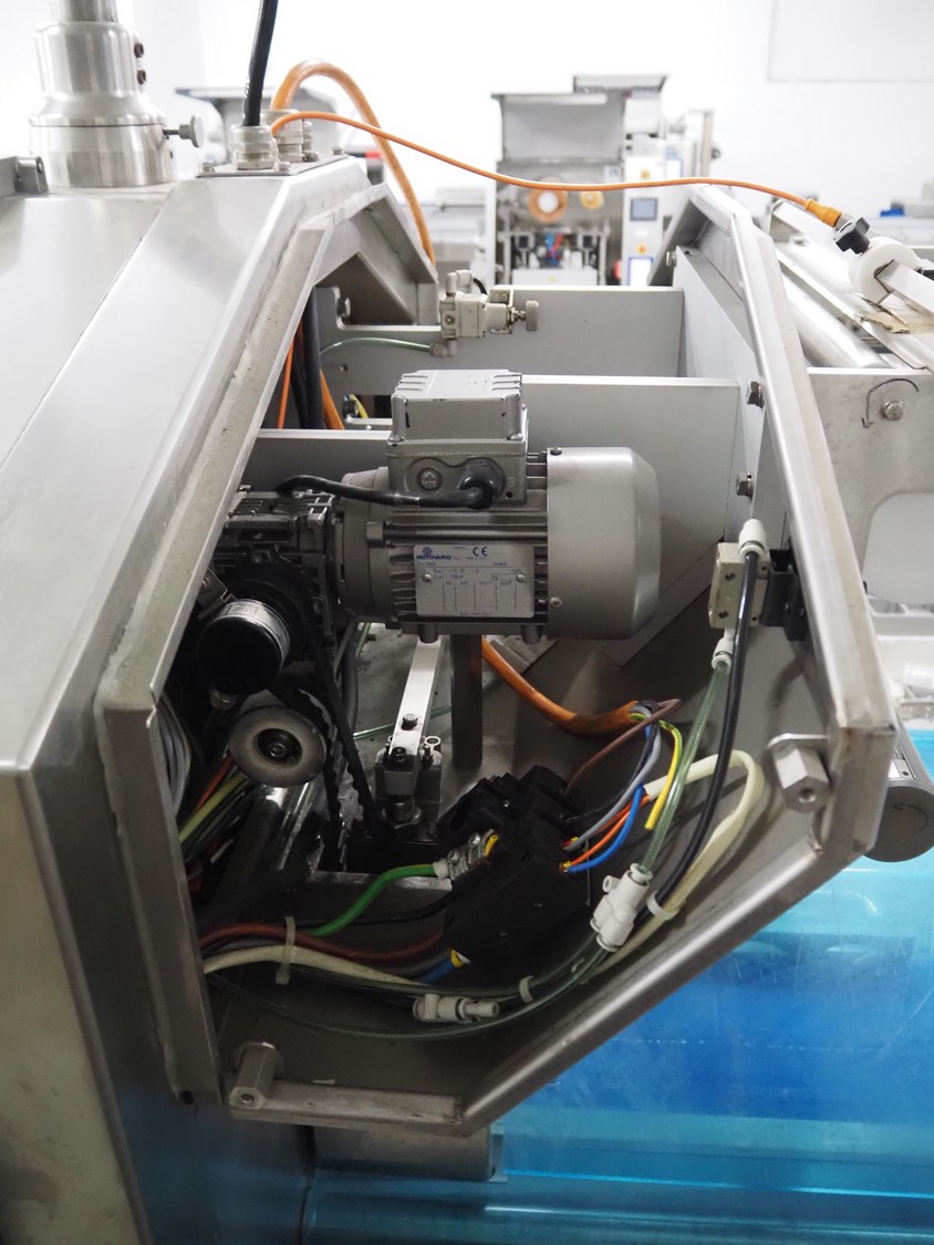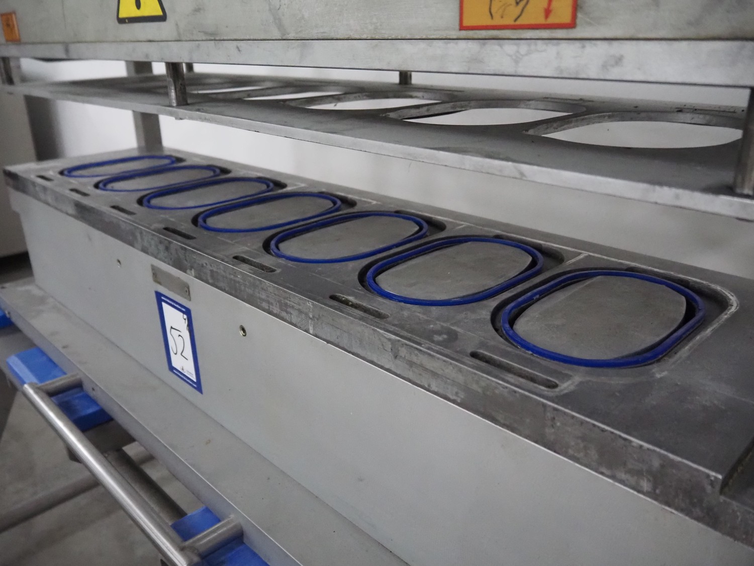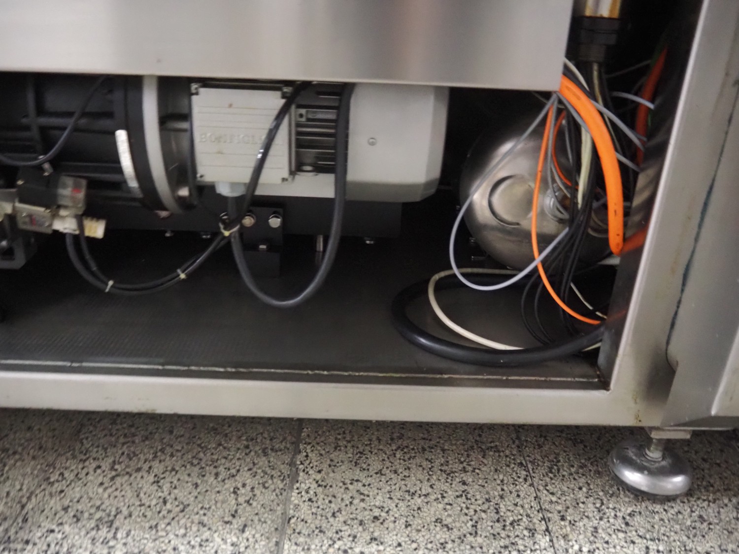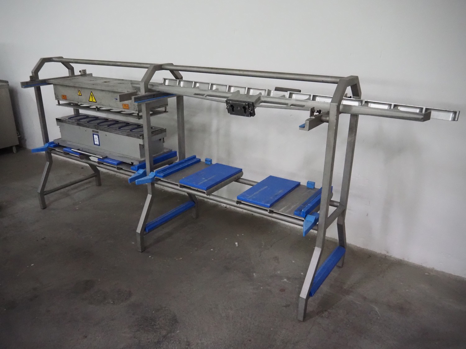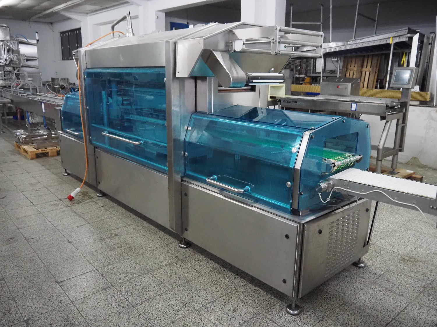 Ulma traysealer, type: Scorpoius-1000, serial number: 7700004, year of construction: 2009, 400 V, 50 Hz, 27 A, 14 kW, dye: (6x) 190 mm x 140 mm, plastic belt, belt width: (2x) 115 mm and (1x) 300 mm, plastic string belt, belt width: 200 mm, total dimensions: 4335 mm x 1140 mm x 2166 mm. Including Becker pump vacuum pump, model: U 4.250SA7K-54, number: F 2567251, year of construction: 2011, 244/276 m³/h, dimensions: 1100 mm x 550 mm x 450 mm, trolley with parts, dimensions trolley: 1650 mm x 950 mm x 1350 mm and rack for dyes, dye: (7x) 160 mm x 100 mm, dimensions rack: 2750 mm x 750 mm x 1400 mm.