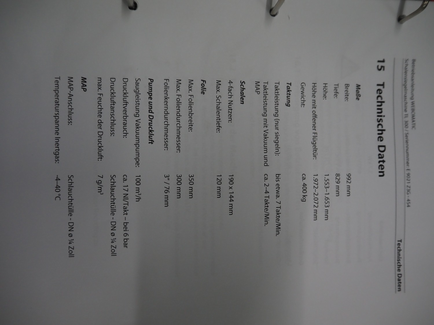 Webomatic traysealer with gas flush, type: TL 300 Skin, serial number: E9021-Z3G-454, year of construction: 2020, 400 V, 3 Ph, 50 Hz, 3.7 kW, weight: 400 kg, dye: (4x) 175 mm x 130 mm, Busch vacuum pump, type: RA 0100 F 503, serial number: DEM120091433, year of construction: 2020, capacity: 100 m³/h, total dimensions: 1000 mm x 800 mm x 1630 mm.