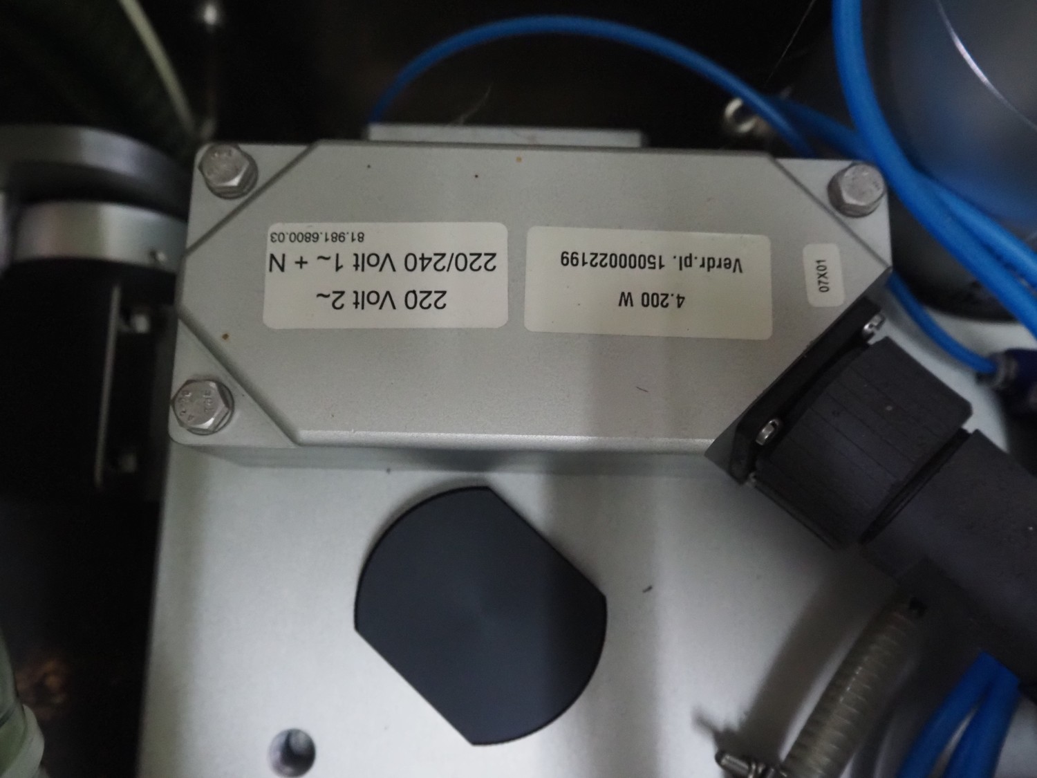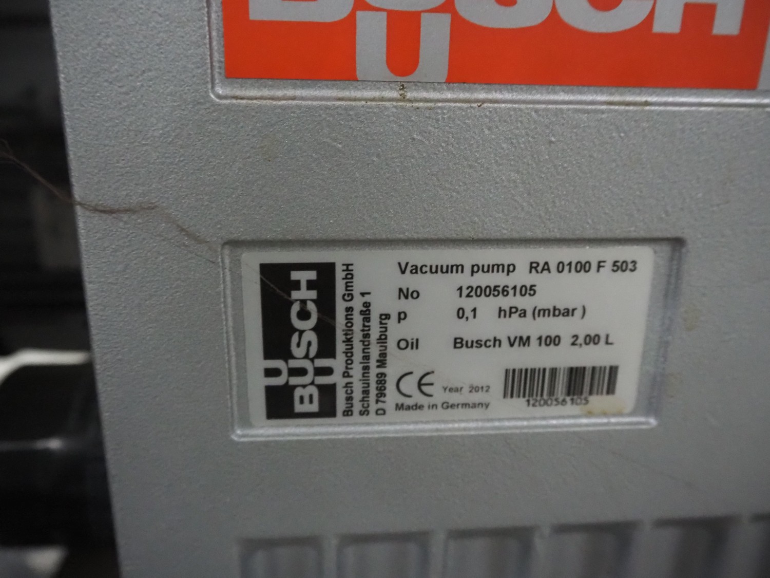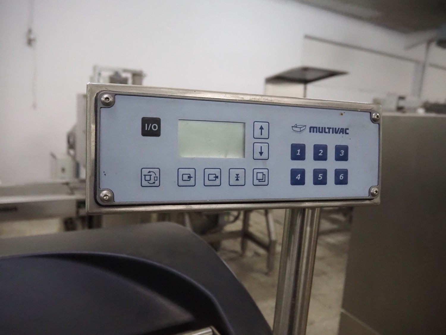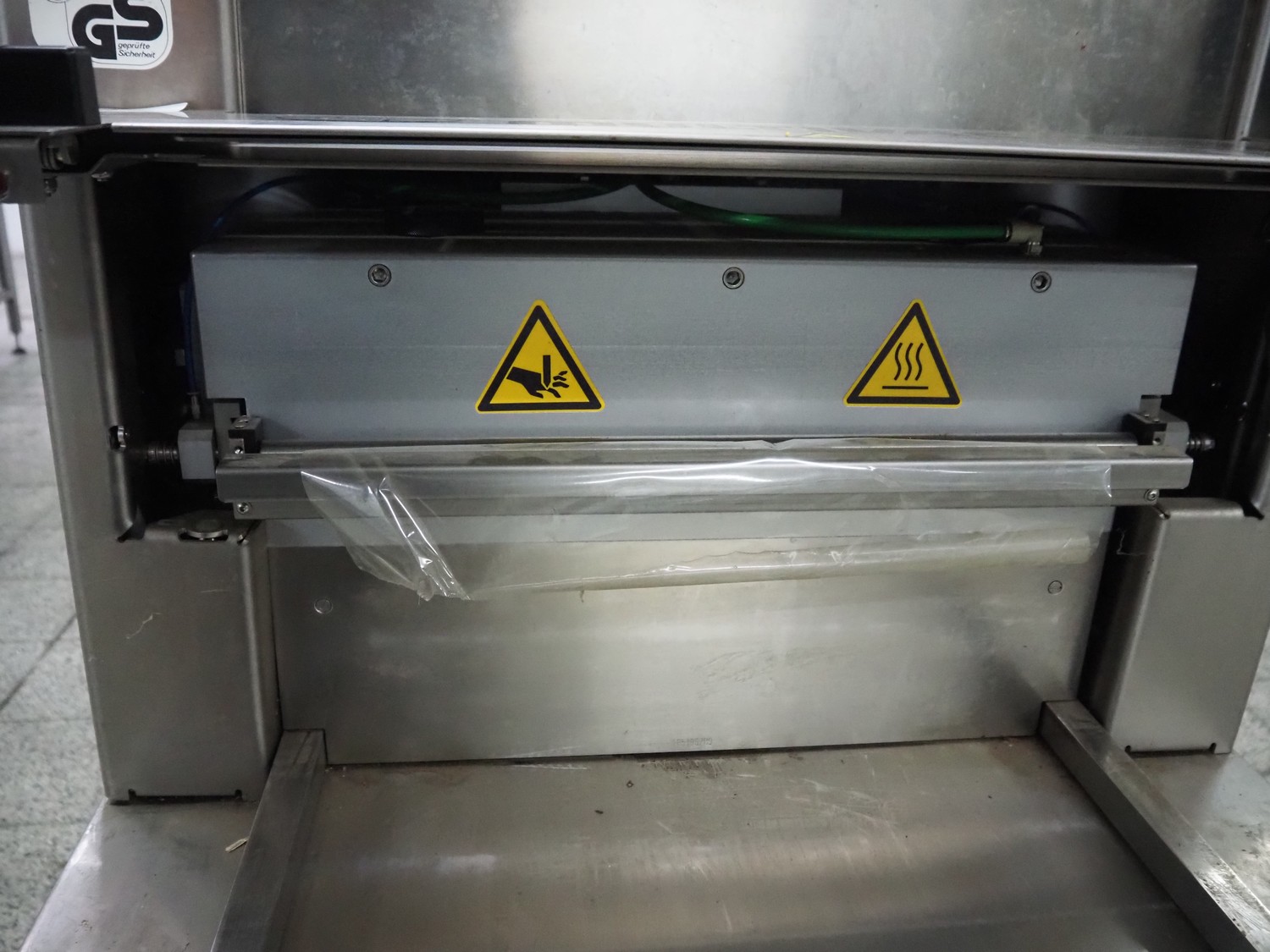 Multivac mobile traysealer, type: T250, serial number: 166980, year of construction: 2012, 400 V, 3 Ph, 50 Hz, 27/32 A, 5.2 kW, Busch vacuum pump, type: RA 100 F 503, year of construction: 2012, 100 m³/h, dimensions: 1300 mm x 800 mm x 1650 mm.
