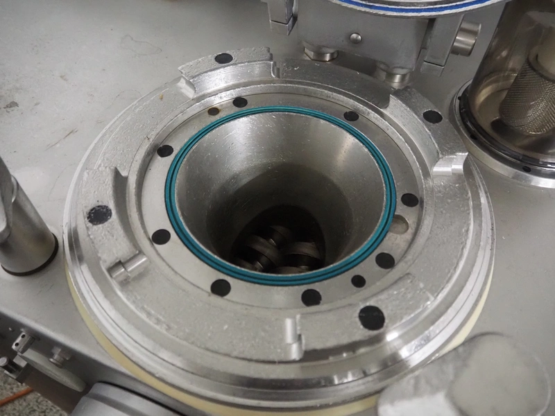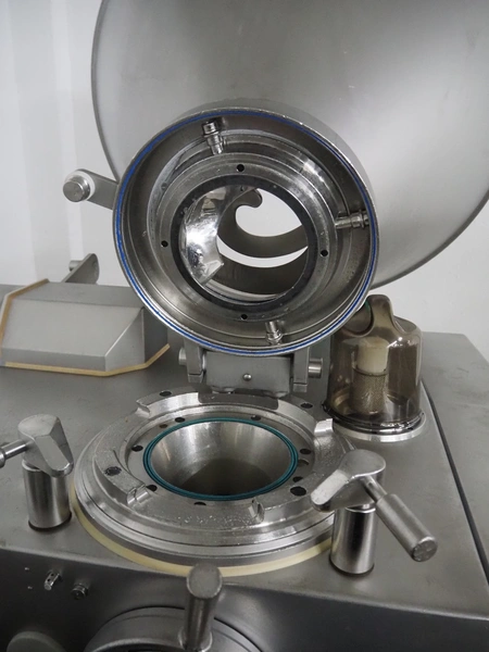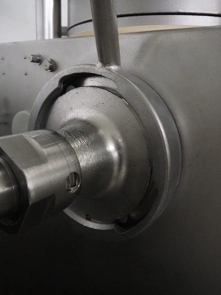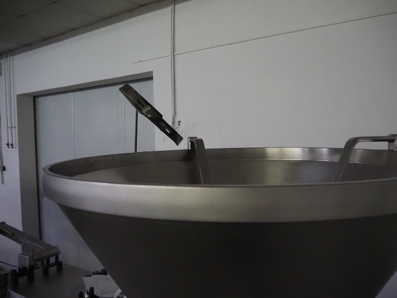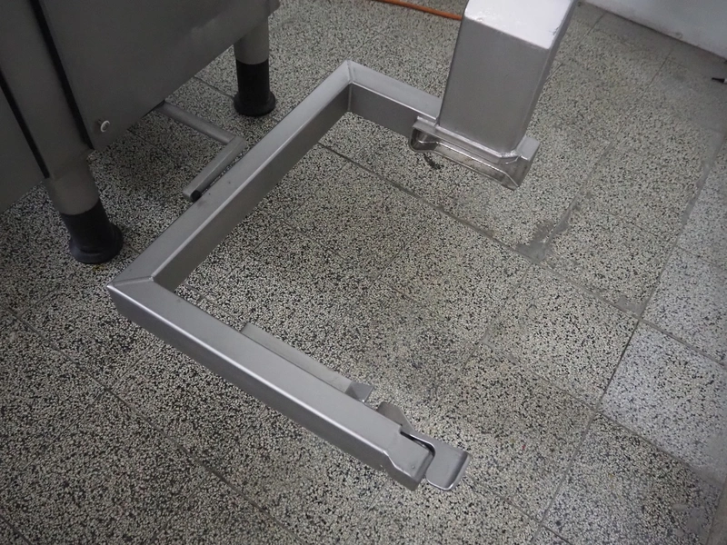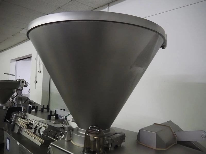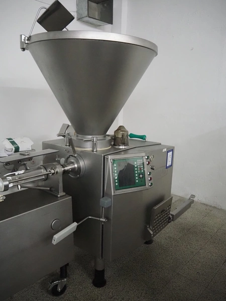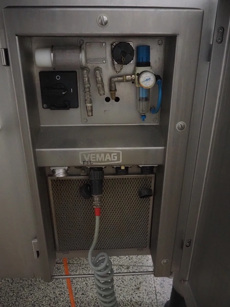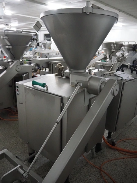 Vemag vacuum filling machine with lifter for 200 liter meat bins, model: HP10E, number: 1610584, year of construction: 2013, 400/460 V, 3 Ph, 50/60 Hz, 21 A, 14 kW, dimensions: 2250 mm x 1500 mm x 2300 mm.