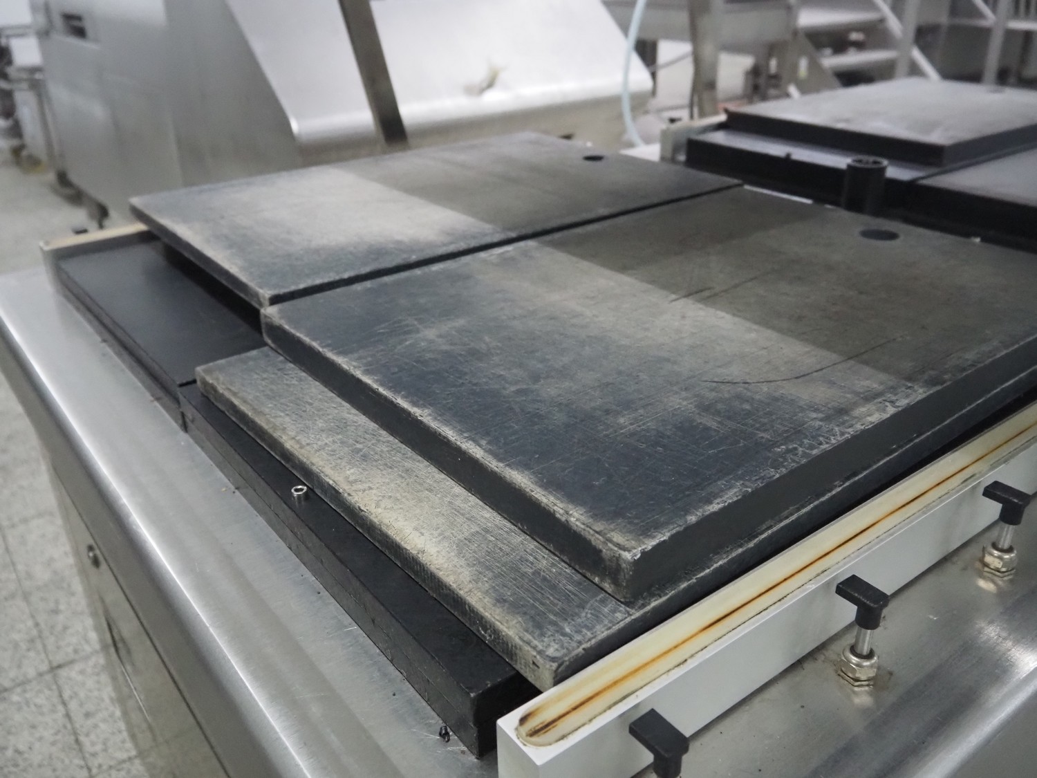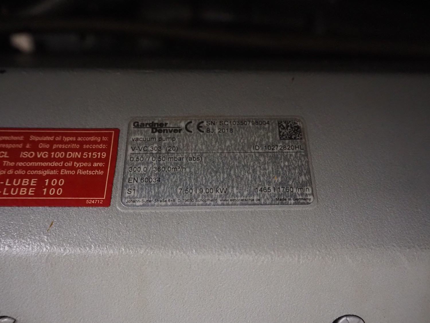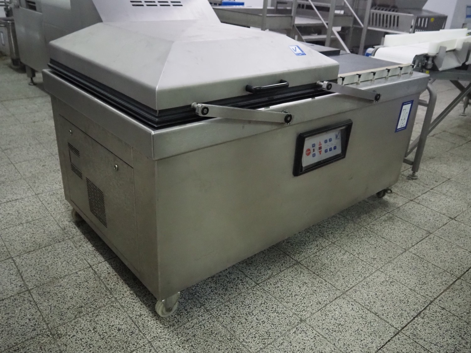 Intervac vacuumtechnik GmbH mobile double chamber vacuum machine with gas flush, type: INV 30/30, serial number: 1764, year of construction: 2004, 230/400 V, 50 Hz, 7.5 kW, weight: 570 kg, chamber dimensions: (2x) 870 mm x 820 mm, seal width: (4x) 815 mm, Gardner Denver vacuum pump, type: V-VC 303 (20), capacity: 300.0/360.0 m³/h, total dimensions: 2000 mm x 1200 mm x 1150 mm.