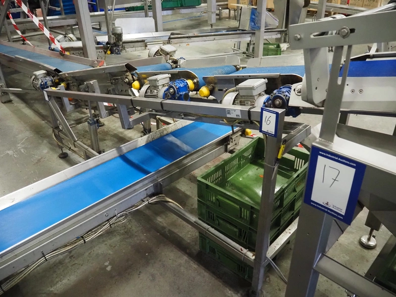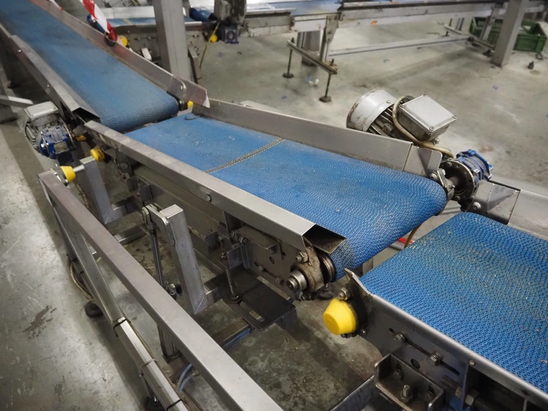 Elevating belt, s/s frame, plastic belt, belt width: (3x) 300 mm, elevating height: 1090 mm, total dimensions: 2200 mm x 780 mm x 1130 mm.