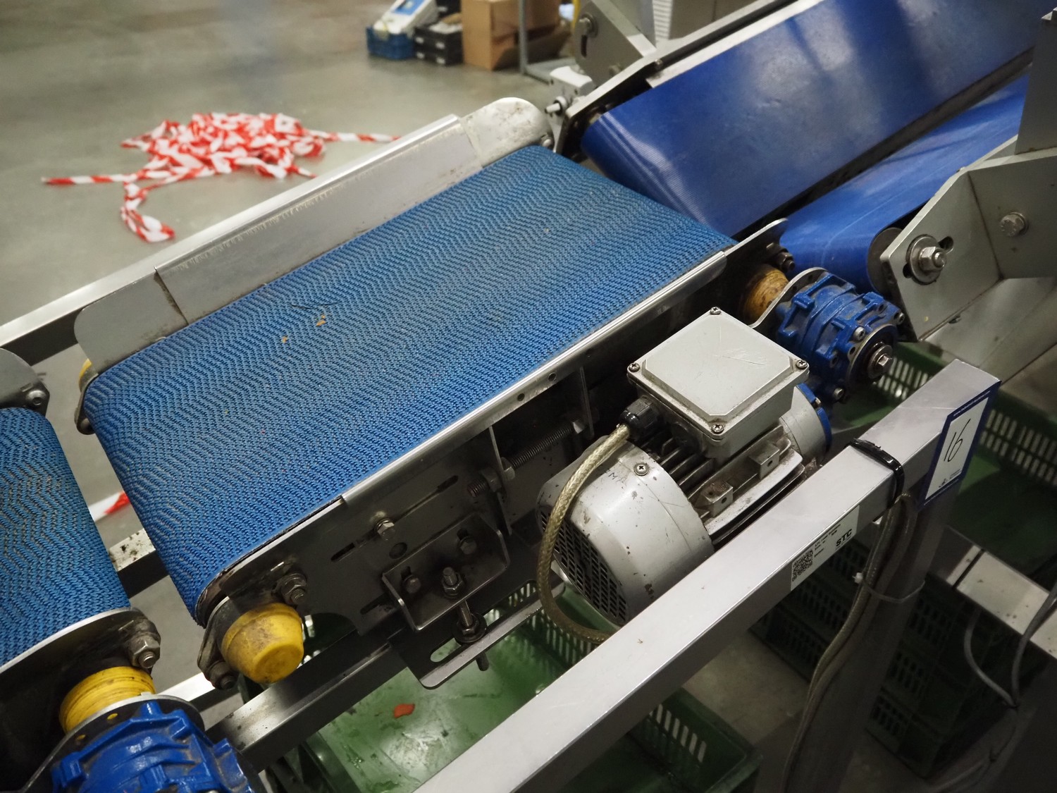 Elevating belt, s/s frame, plastic belt, belt width: (3x) 300 mm, elevating height: 1090 mm, total dimensions: 2200 mm x 780 mm x 1130 mm.