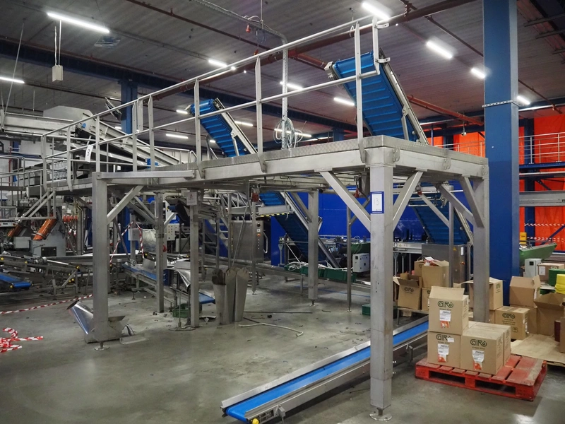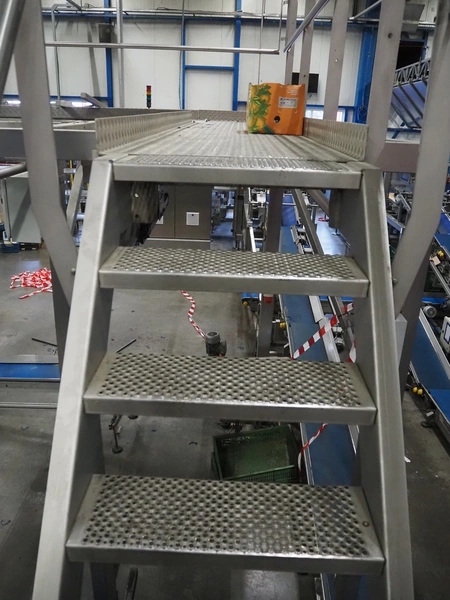 S/s platform with stairs, working height: 2450 mm, dimensions platform: 8600 mm x 3770 mm x 3600 mm, dimensions stairs: 2300 mm x 910 mm x 3590 mm.