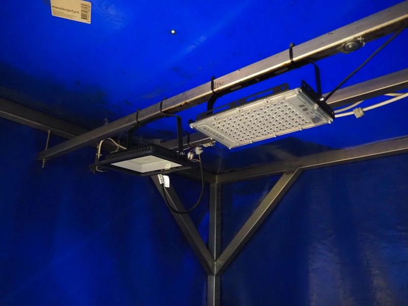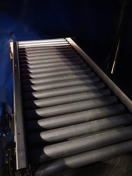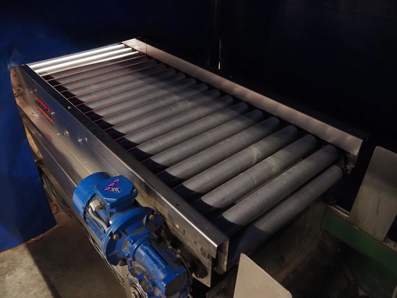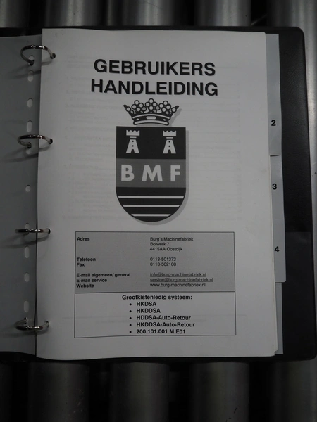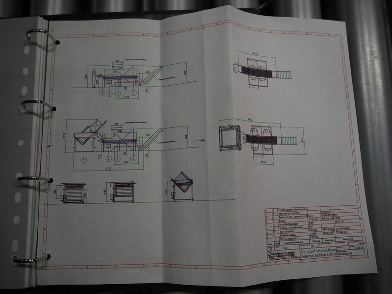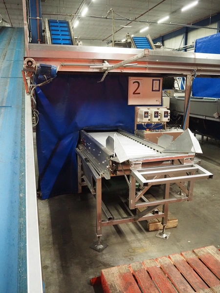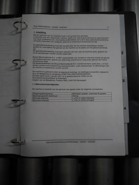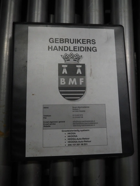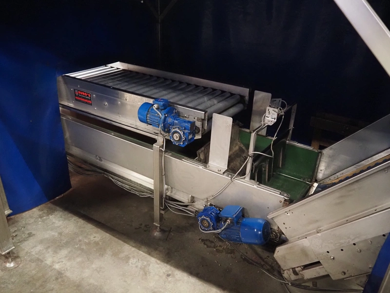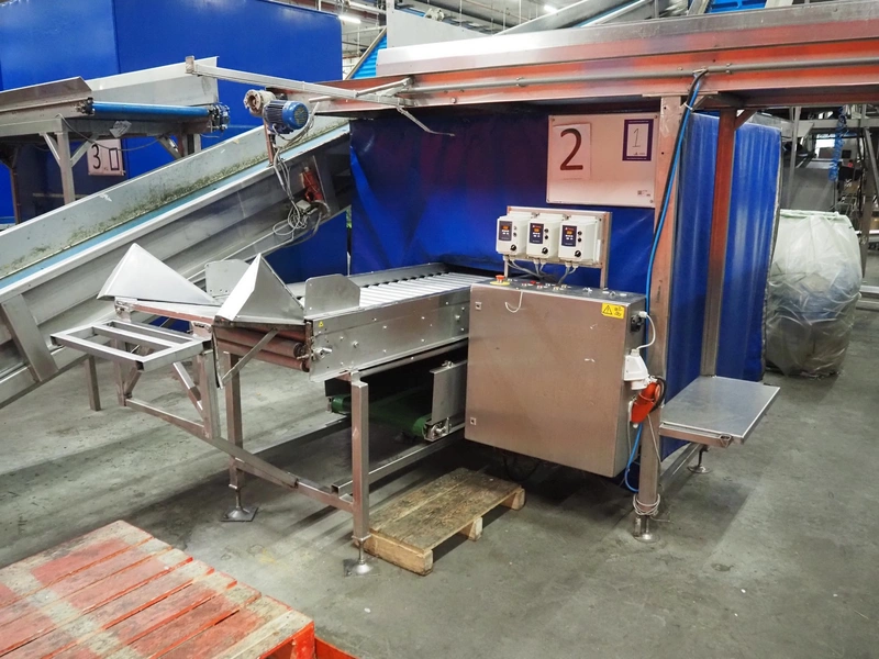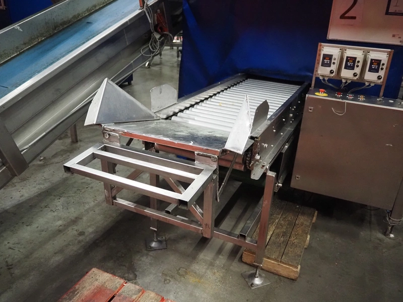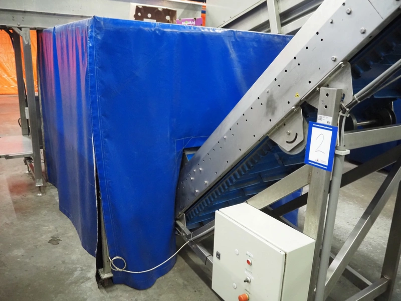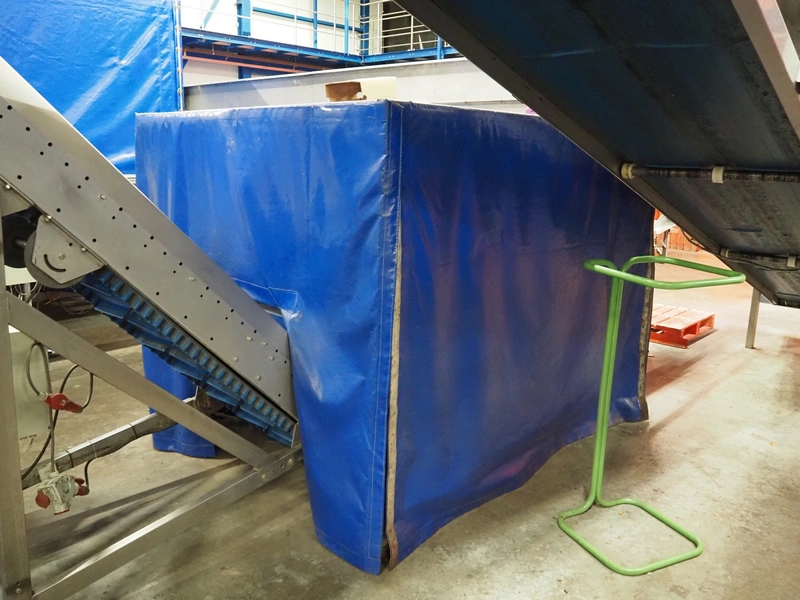 Burg's Machinefabriek sorting and buffer belt with s/s mobile frame including cover, type: HKDSA / HKDDSA, aluminium rollers, roller width: 570 mm, plastic belt, belt width: 580 mm, total dimensions sorting and buffer belt: 4000 mm x 1650 mm x 1370 mm, dimensions frame: 2500 mm x 2000 mm x 1930 mm.