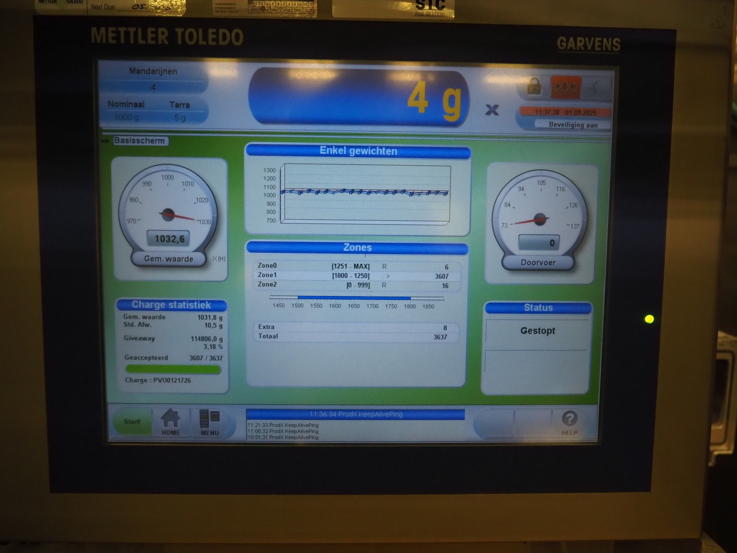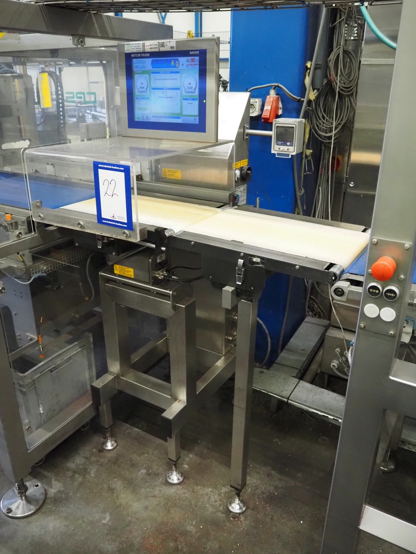 Mettler-Toledo Garvens GmbH check weigher, type: XS 3, number: 35006737 year of construction: 2016, 100-240 V, 50-60 Hz, maximum: 6000 gram, minimum: 0 gram, d= 1 gram, T= -5400 gram, plastic belt, belt width: (2x) 380 mm, total dimensions: 1100 mm x 930 mm x 1800 mm.