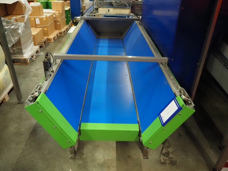 MAF RODA buffer belt, number: 027.178.001, 400 V, 50 Hz, 3 A, 10 KA, plastic belts, belt width: (2x) 495 mm and (2x) 415 mm, total dimensions: 3950 mm x 1350 mm x 1150 mm.