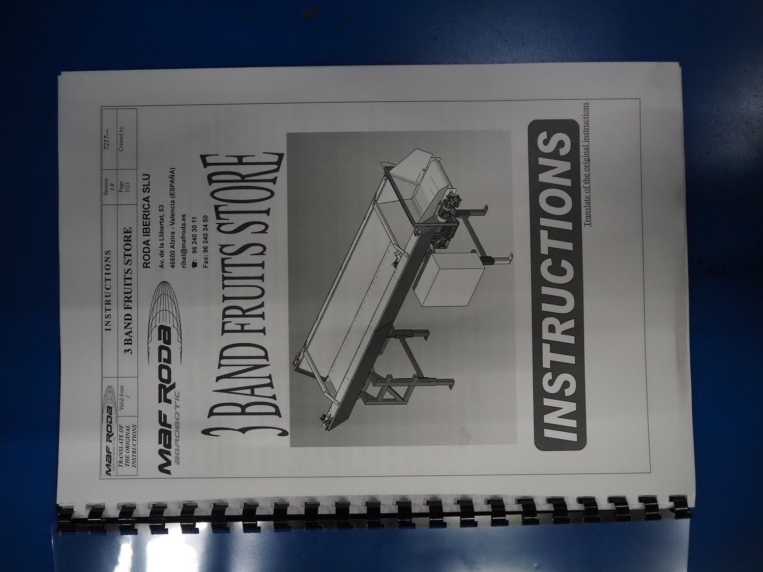 MAF RODA buffer belt, number: 027.178.001, 400 V, 50 Hz, 3 A, 10 KA, plastic belts, belt width: (2x) 495 mm and (2x) 415 mm, total dimensions: 3950 mm x 1350 mm x 1150 mm.