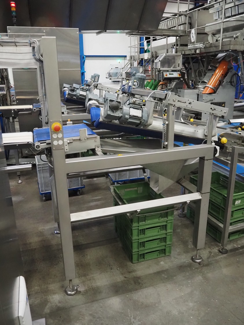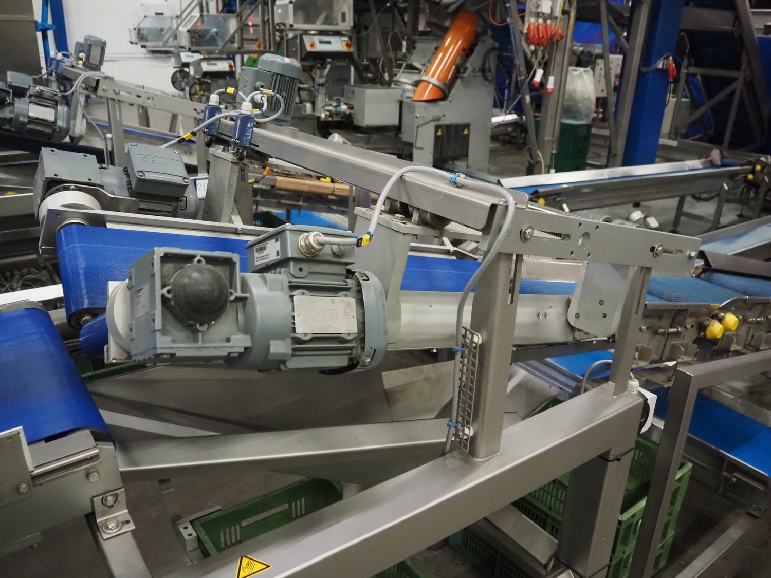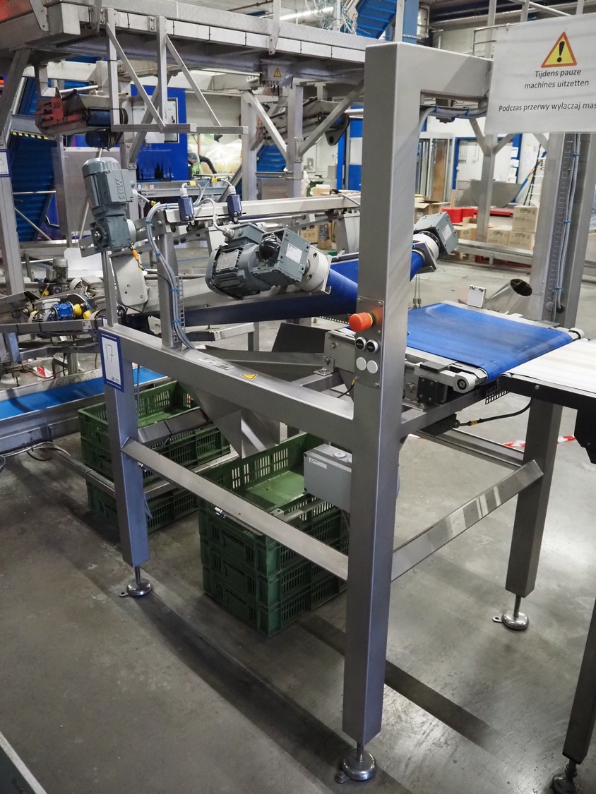 CPS Case Packing Systems buffer belt, number: 42321, year of construction: 06-2016, plastic belt, belt width: (2x) 200 mm and 450 mm, total dimensions: 1550 mm x 980 mm x 1840 mm.
