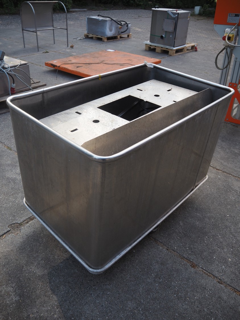 S/s mobile dispenser tub for plates, inside dimensions: 1060 mm x 660 mm, total dimensions: 1130 mm x 710 mm x 1020 mm. Lot located on other location in Urk (NL). Viewing and pick-up in consultation with Industrial Auctions BV.
