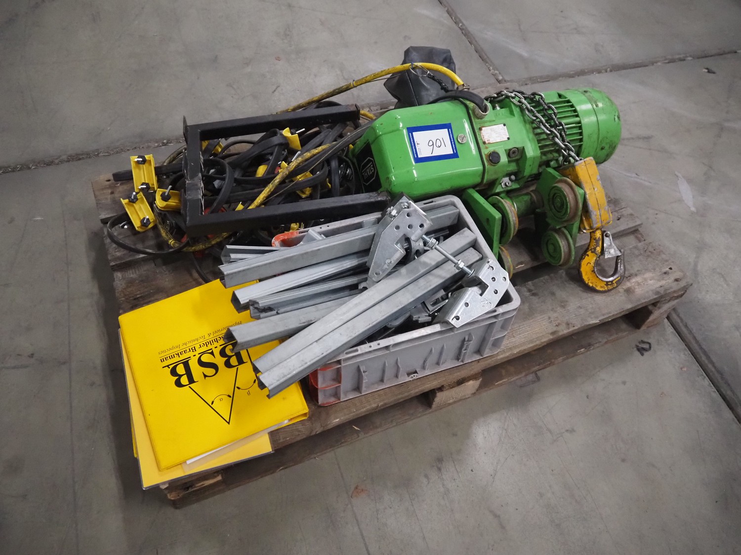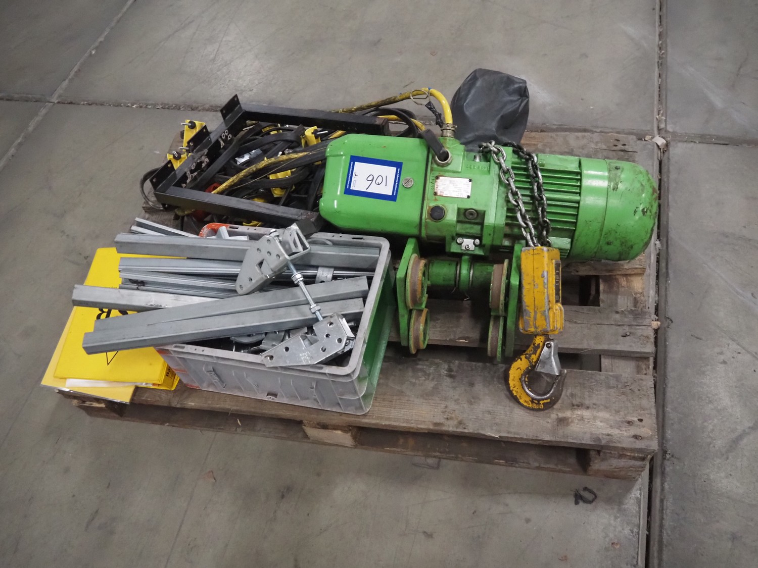 Stahl electrical chain hoist, type: T405M, number: 1417077, year of construction: 1992, 380 V, 50 Hz, 3.9/2.2 A, 1.2/0.18 kW, dimensions: 650 mm x 500 mm x 300 mm.