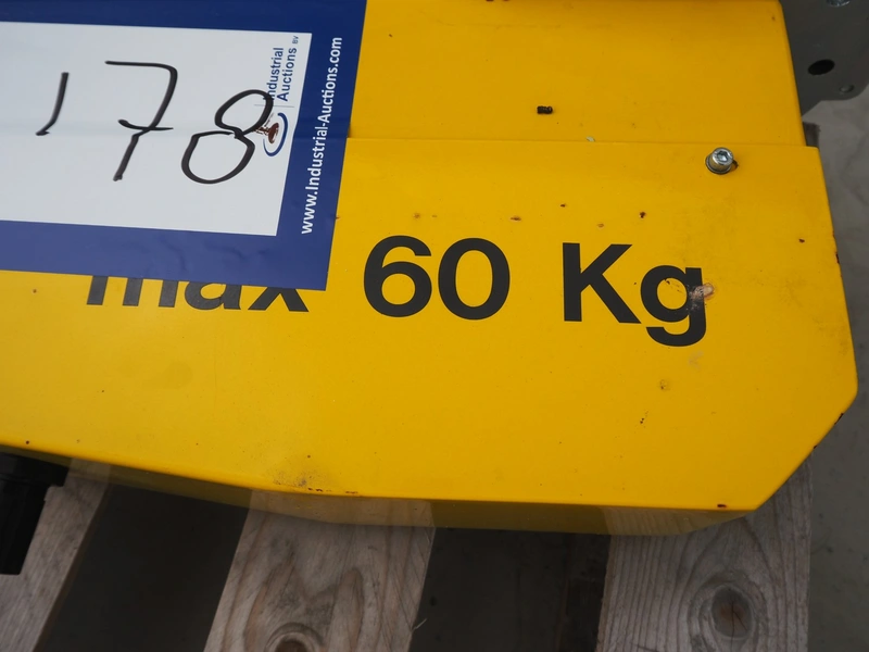 Dalmec S.p.A. industrial manipulator, maximum weight: 60 kg, dimensions frame: 340 mm x 340 mm x 2350 mm, dimensions arm: 1700 mm x 2000 mm x 380 mm.