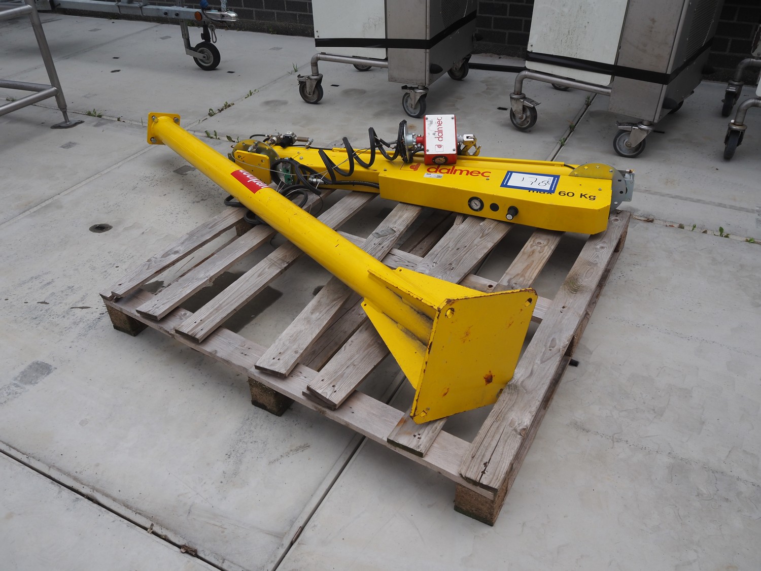 Dalmec S.p.A. industrial manipulator, maximum weight: 60 kg, dimensions frame: 340 mm x 340 mm x 2350 mm, dimensions arm: 1700 mm x 2000 mm x 380 mm.