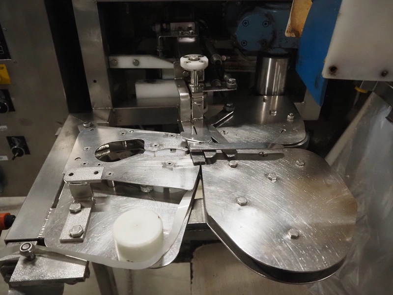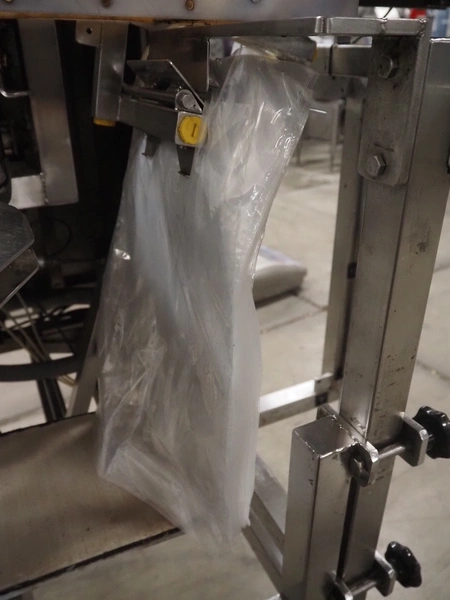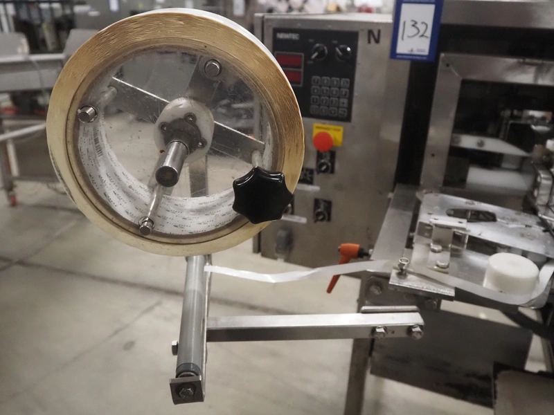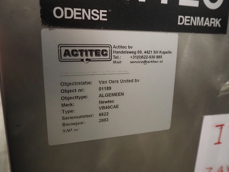 Newtec bag filling and closing machine, type: VB40CAE, number: 6622, year of construction: 2003, 400 V, 3 Ph, 4 A, 1.1 kW, plastic belt, belt width: 150 mm, total dimensions: 1900 mm x 1350 mm x 1520 mm.