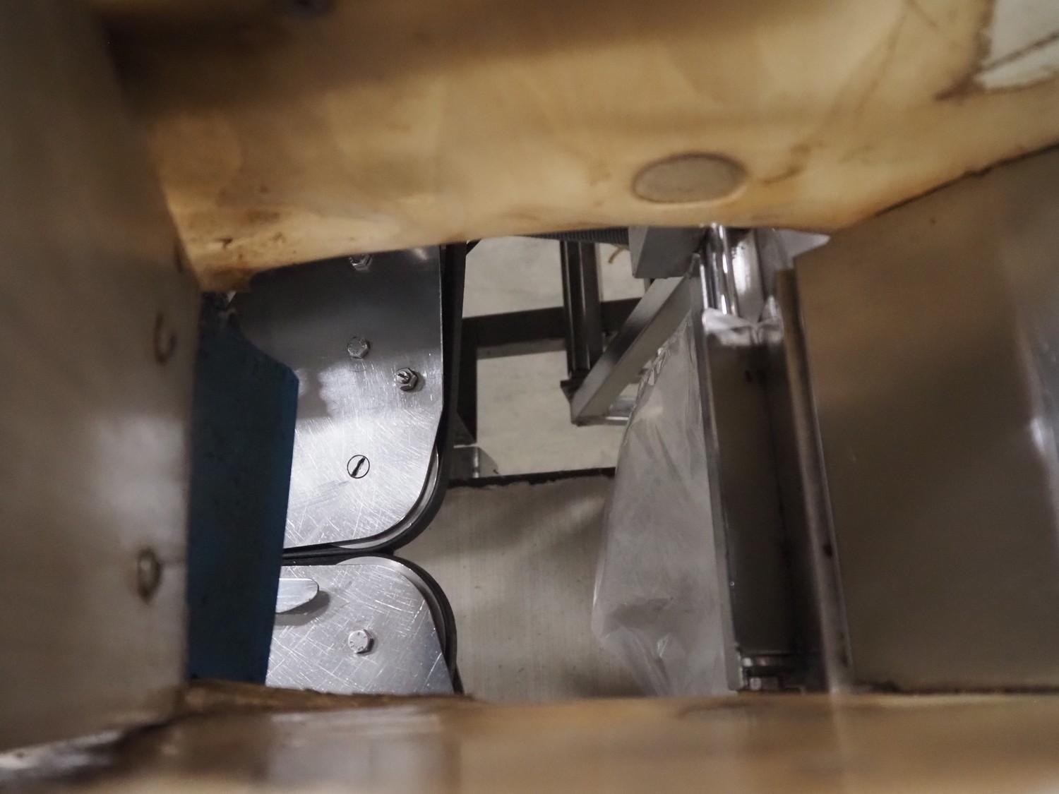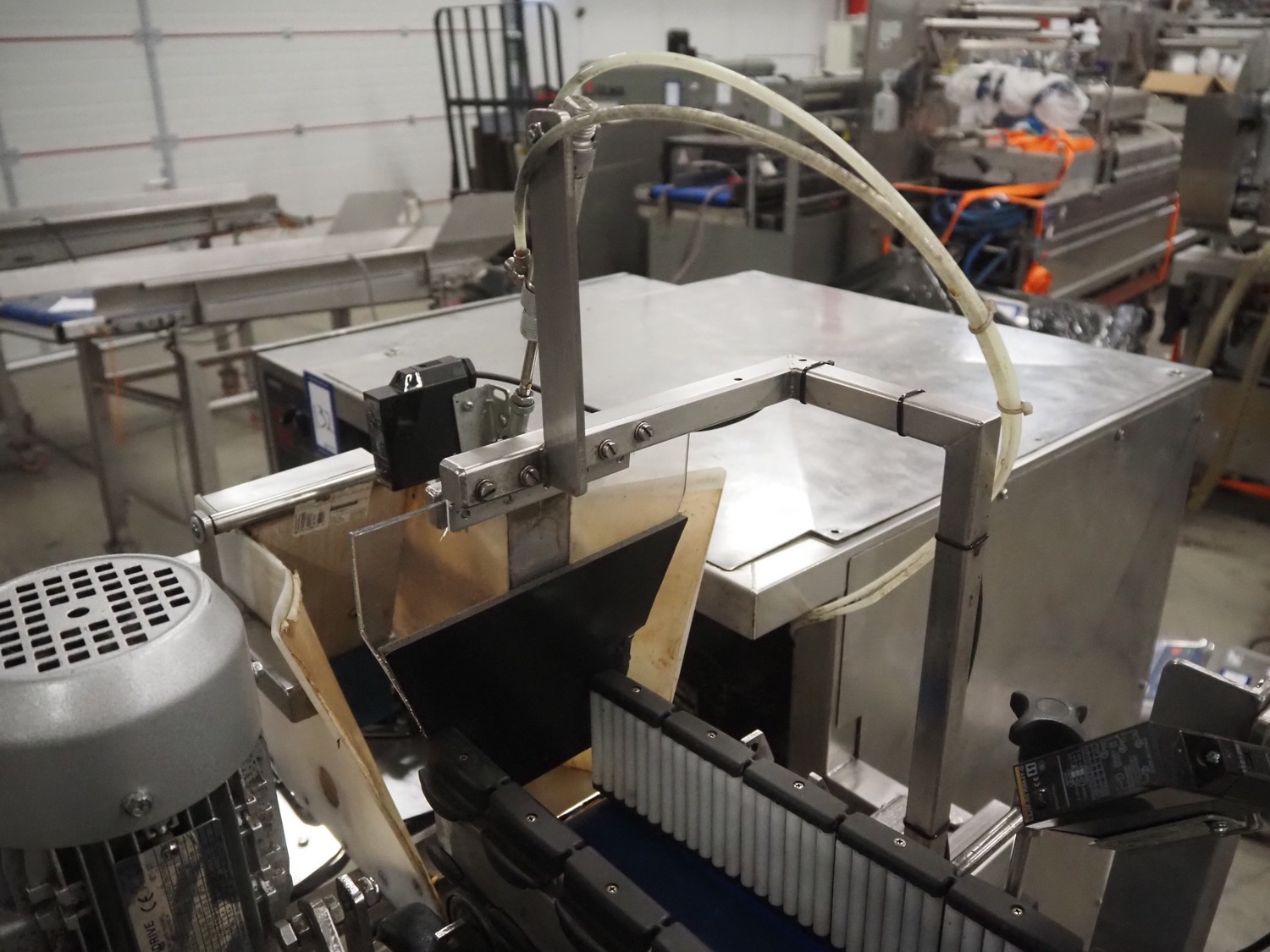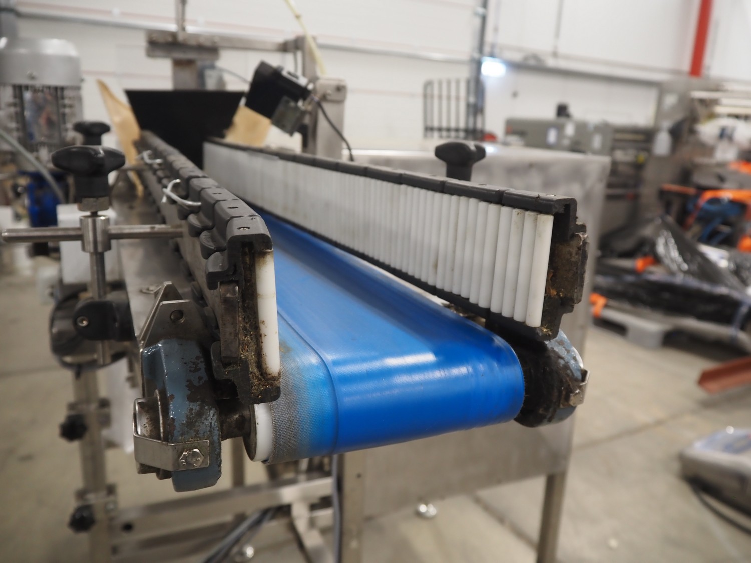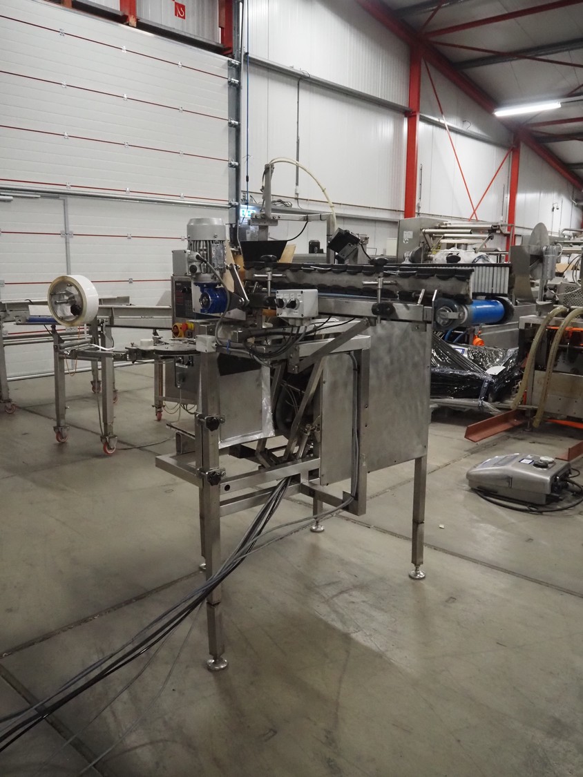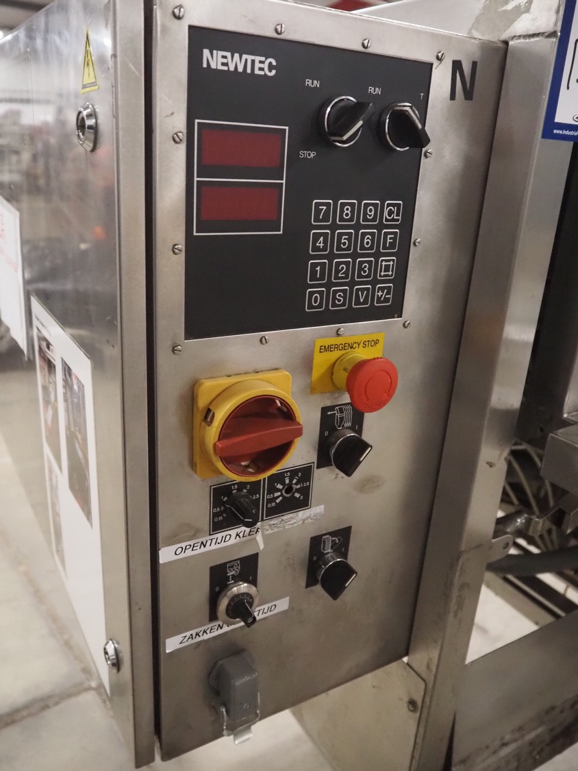 Newtec bag filling and closing machine, type: VB40CAE, number: 6622, year of construction: 2003, 400 V, 3 Ph, 4 A, 1.1 kW, plastic belt, belt width: 150 mm, total dimensions: 1900 mm x 1350 mm x 1520 mm.