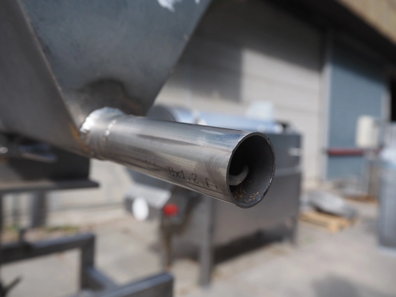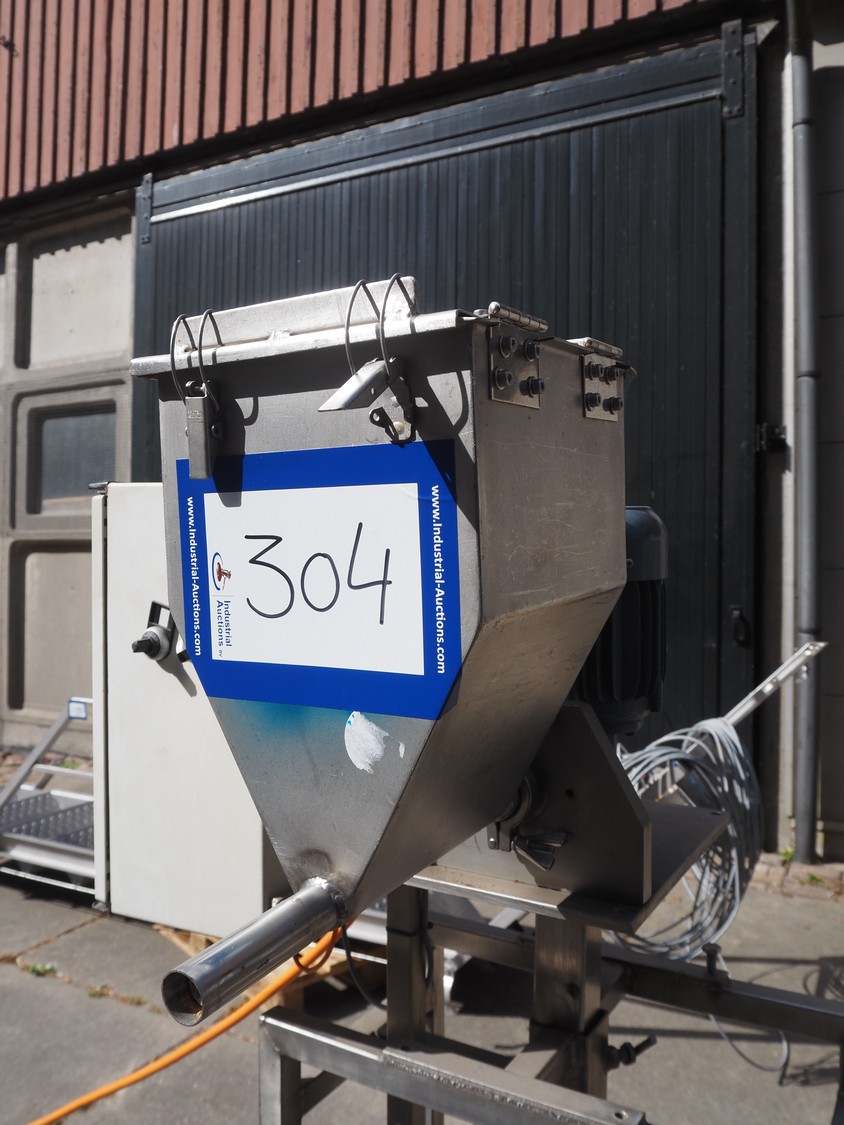 Mobile s/s feeder used for herbs, diameter outfeed: 30 mm, total dimensions: 800 mm x 800 mm x 1630 mm. Lot located on other location in Urk (NL). Viewing and pick-up in consultation with Industrial Auctions BV.