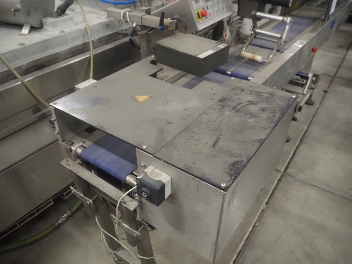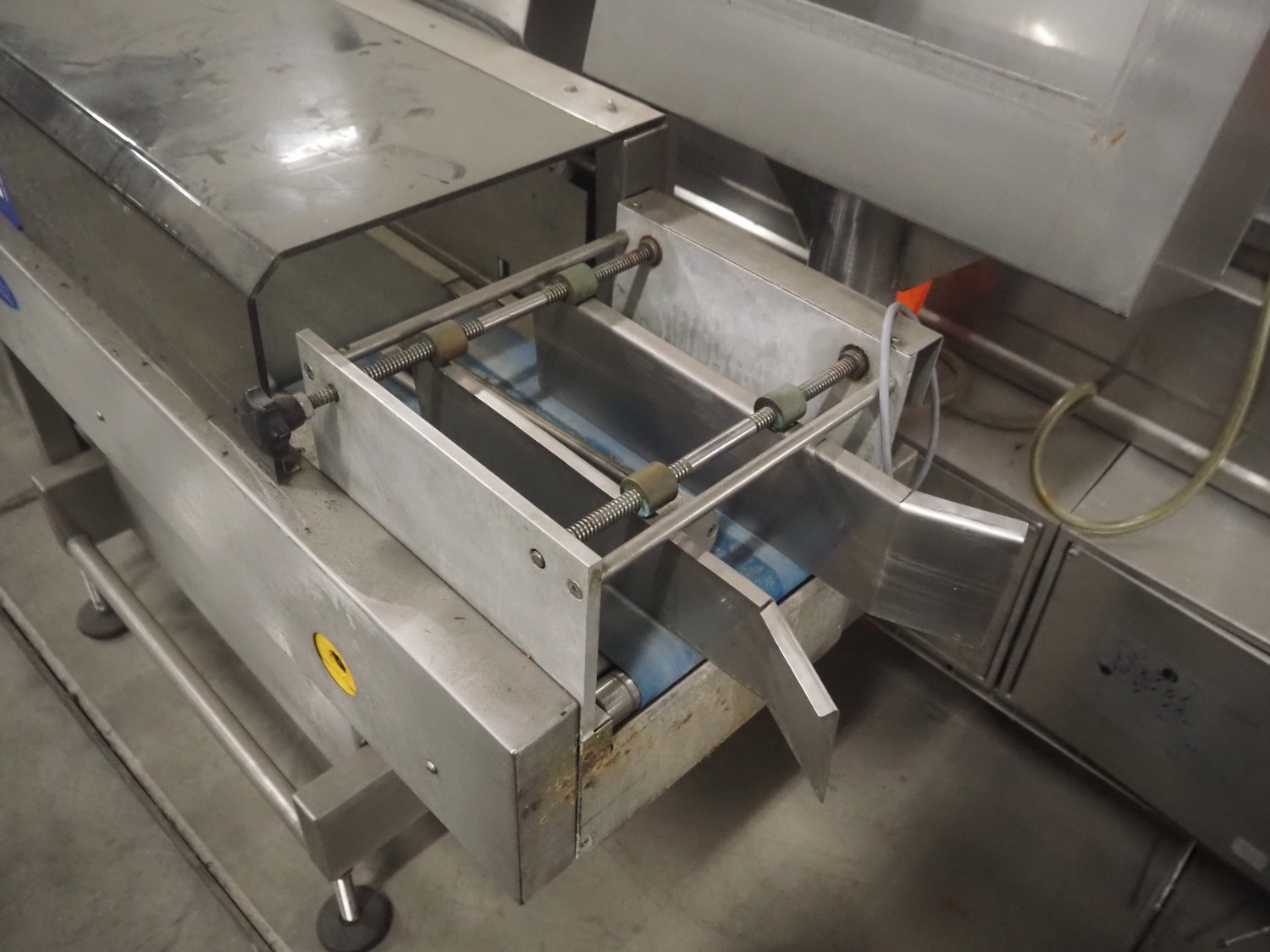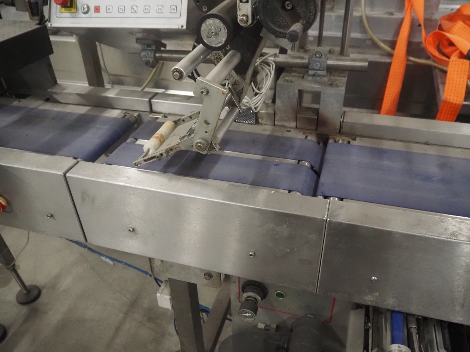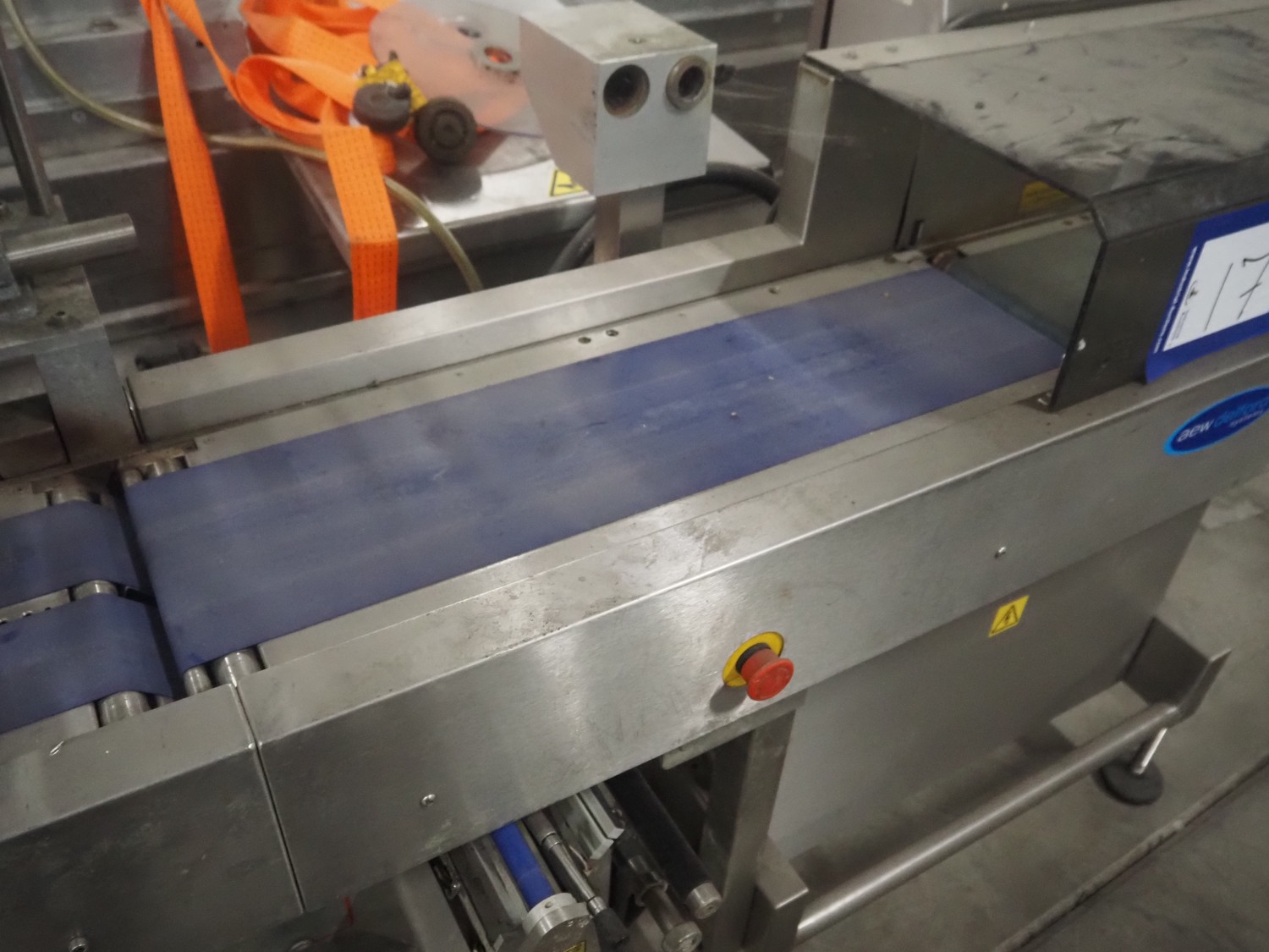 AEW Delford checkweighing and labelling machine, type: 8060, fabrication number: 86229, year of construction: 2006, 230 V, 50 Hz, maximum weight: 4000 gram, minimum weight: 40 gram, e=: 2 gram, T= -1000 gram, capacity: 100 pieces per minute, top and bottom labeller, plastic belt, belt width: (2x) 90 mm and (1x) 195 mm, total dimensions: 1200 mm x 700 mm x 1600 mm and 1500 mm x 680 mm x 2000 mm. Missing screen.