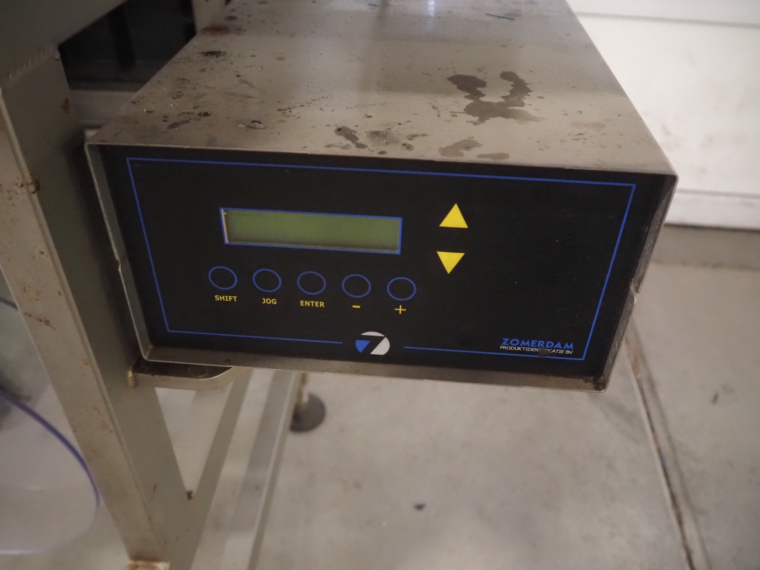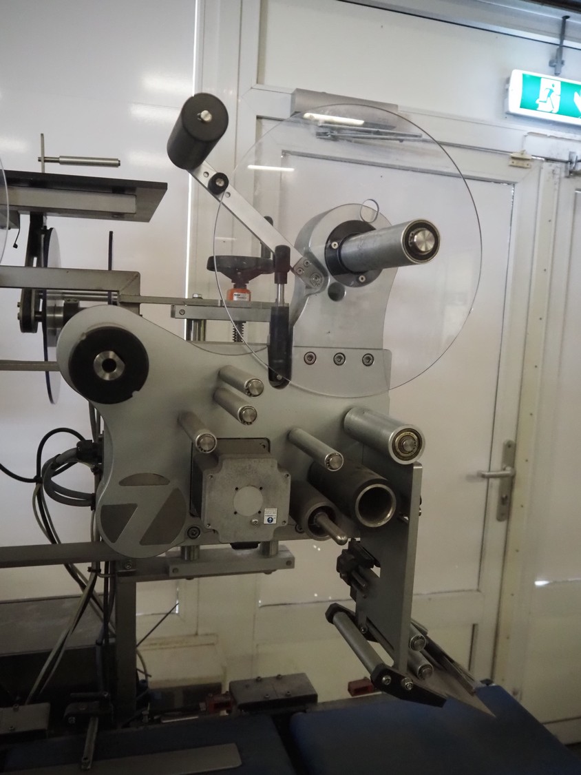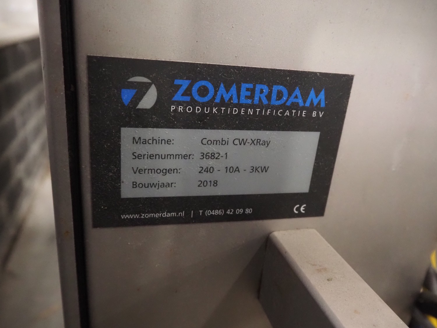 Zomerdam checkweighing and labelling machine with 3 top labellers and 1 bottom labeller, type checkweigher: DCW- 0.5/1, fabrication number: 3682-1, year of construction: 2018, 230 V, 50 Hz, maximum weight: 0.125 - 1.2 kg, minimum weight: 40 gram, d = e = 0.5 / 1 gram, belt width: 200 mm, total dimensions: 4520 mm x 1150 mm x 2000 mm.