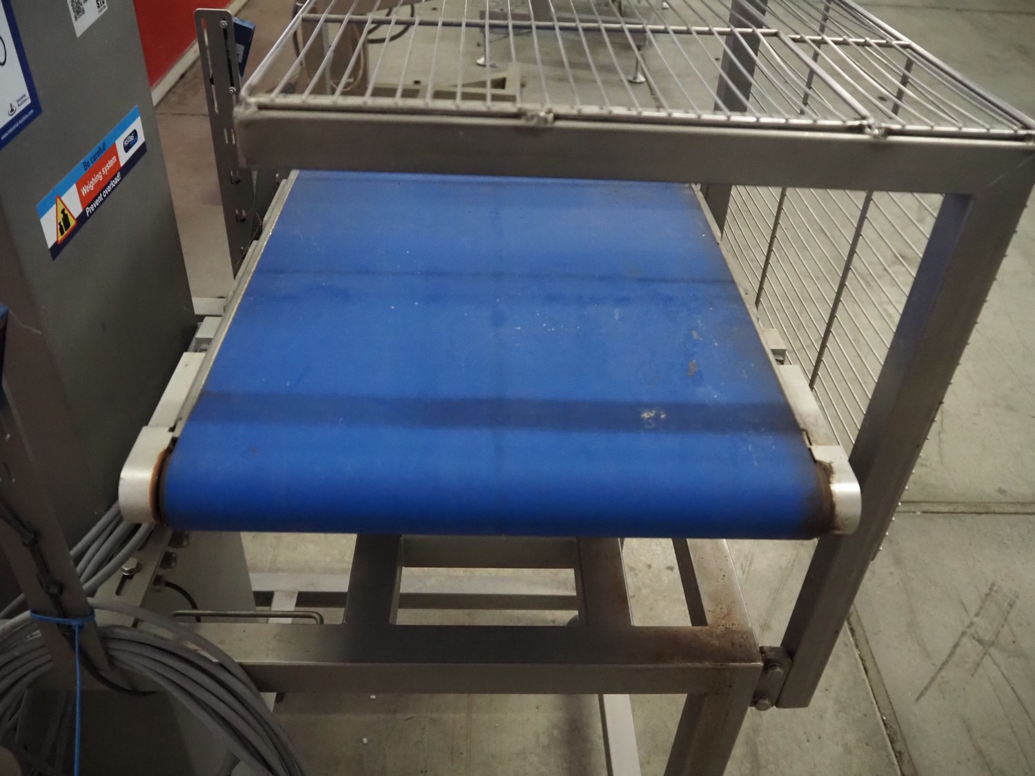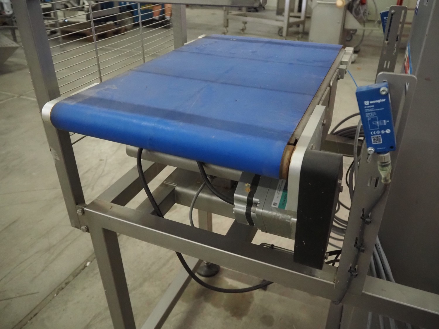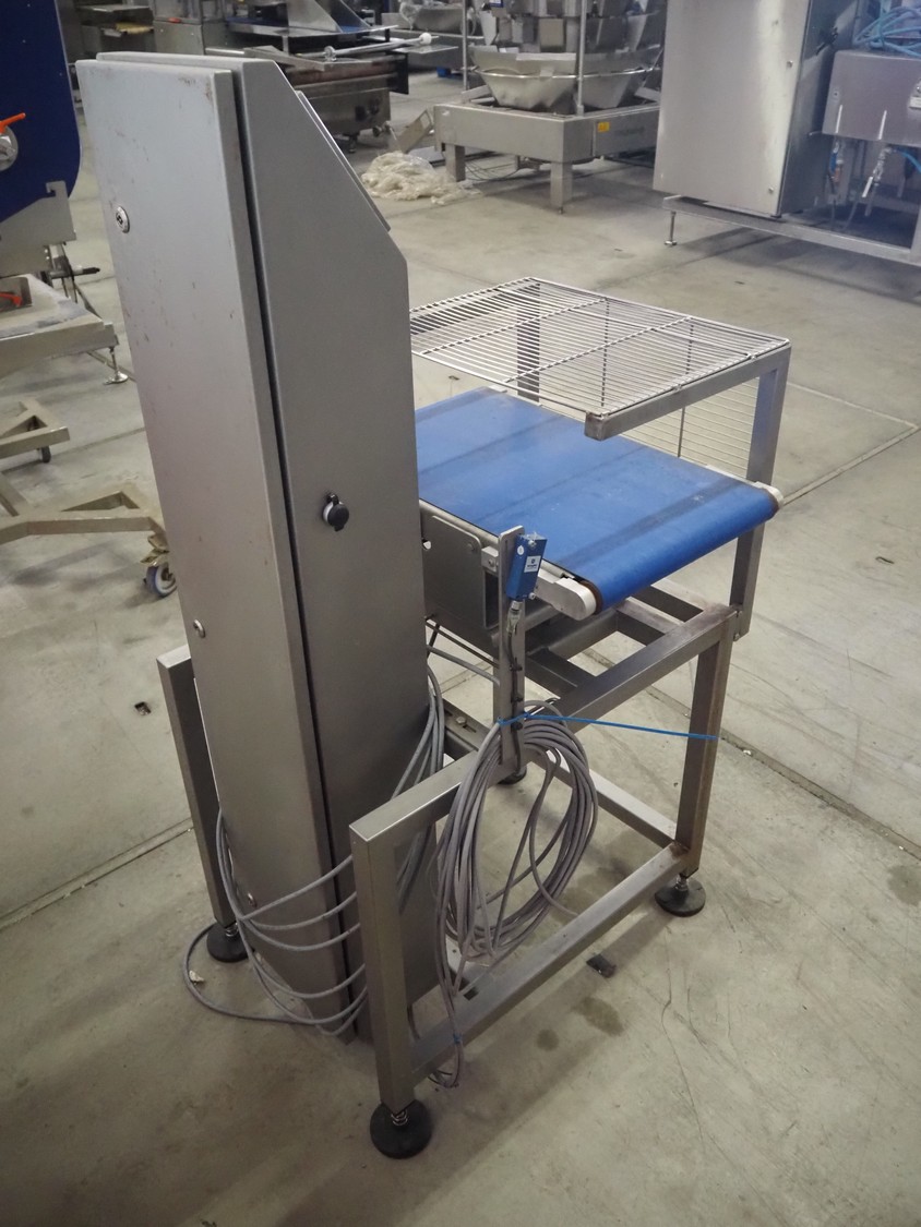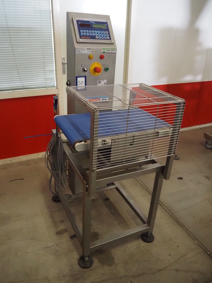 HENK MAAS Scales checkweigher, type: CW-100, serial number: 73304449, 230 V, maximum: 6 kg, minimum: 100 gram, e - 5 gram, total dimensions: 820 mm x 650 mm x 1510 mm.