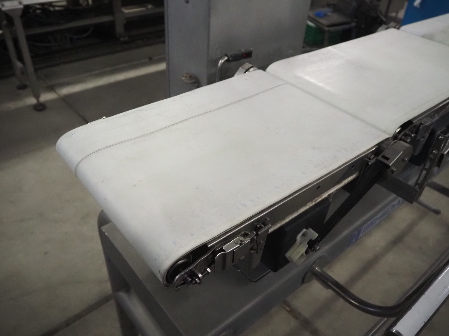 Ishida checkweigher with rejecter, type: DACS-W-030-SB/WP-I-N, serial number: 562484, year of construction: 2012, 240 V, 50 Hz, 2A, maximum weight: 3300 mm, minimum weight: 125 gram, plastic belt, belt width: 300 mm, total dimensions: 1800 mm x 810 mm x 1600 mm.