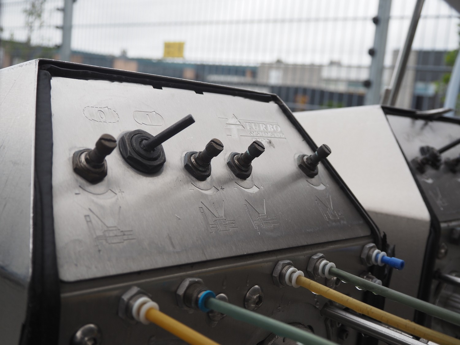 Turbo Systems LTD mobile 4-heads depositor, type: D152P, machine number: D152P5903029, year of construction: 2009, dimensions: 1540 mm x 1250 mm x 2240 mm.