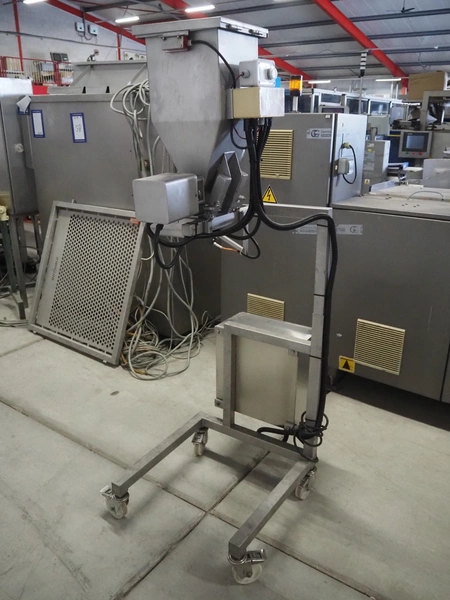 Fomaco Food Machinery Company A/S mobile depositor, model: DPD 20, machine number: 7863, year of construction: 1999, 230 V, 1 Ph, 50 Hz, 3.0/16 A, dimensions: 700 mm x 900 mm x 1800 mm. Incomplete.