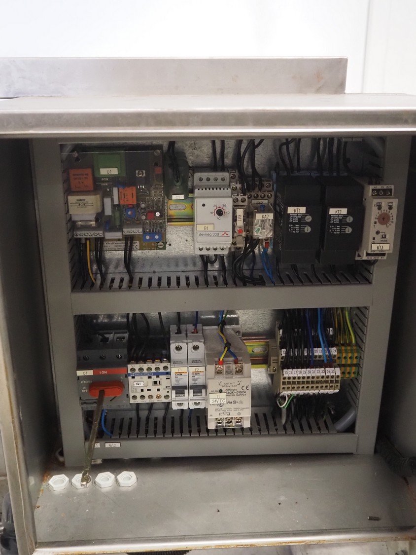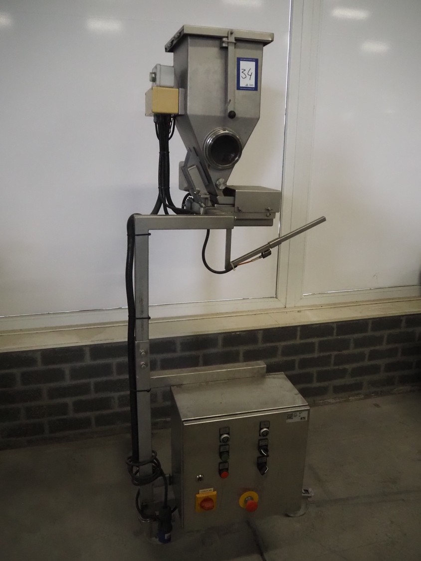 Fomaco Food Machinery Company A/S mobile depositor, model: DPD 20, machine number: 7863, year of construction: 1999, 230 V, 1 Ph, 50 Hz, 3.0/16 A, dimensions: 700 mm x 900 mm x 1800 mm. Incomplete.