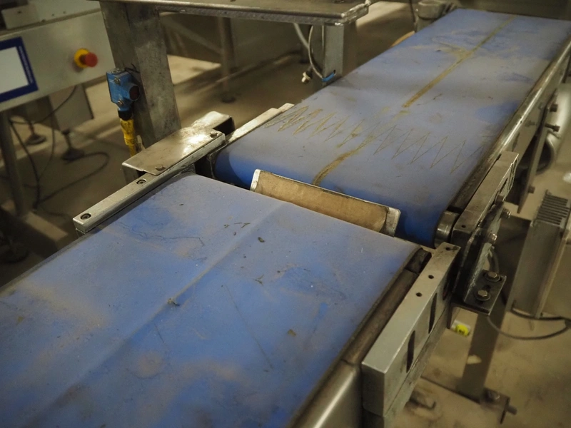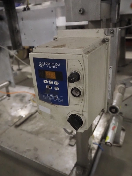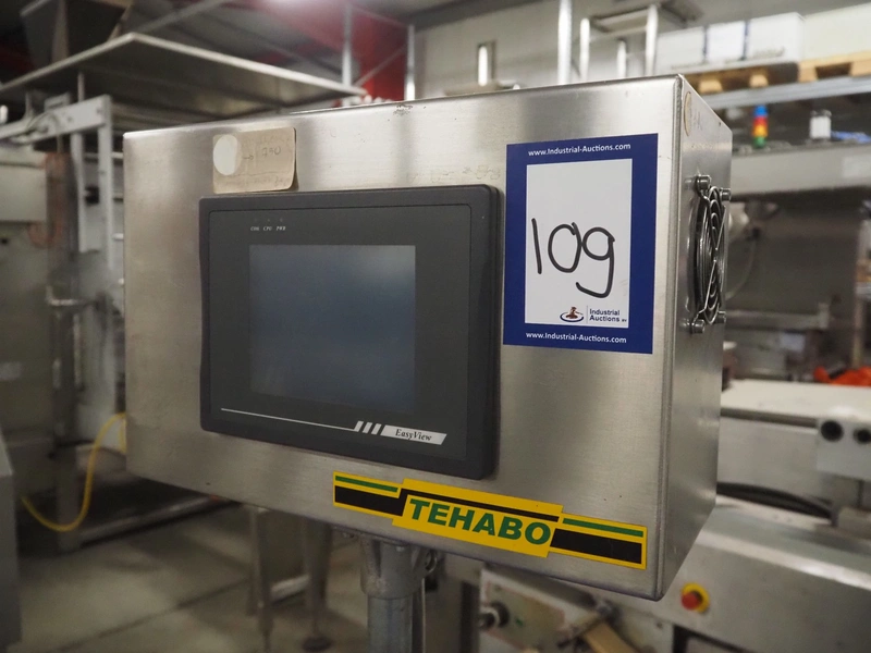Tehabo labelling machine, plastic belt, belt width: 240 mm, total dimensions: 1700 mm x 550 mm x 1560 mm.
