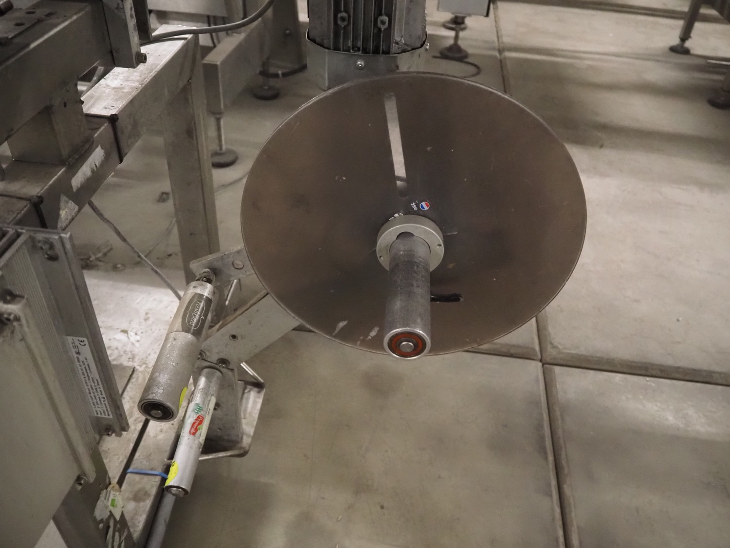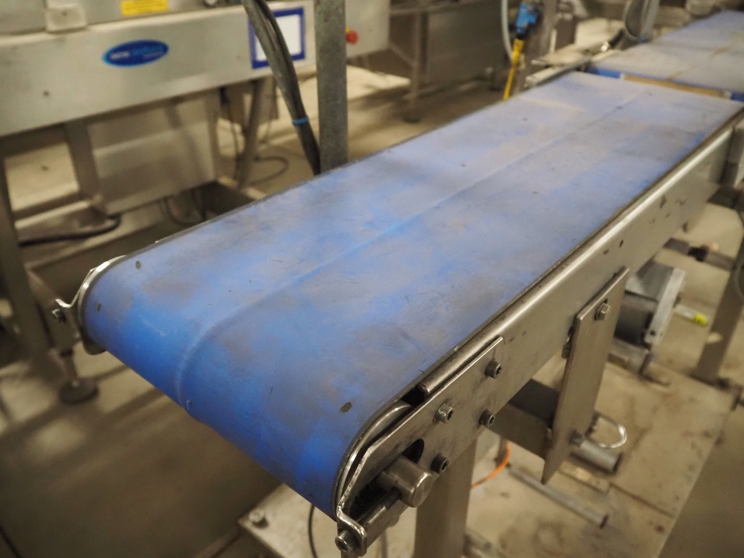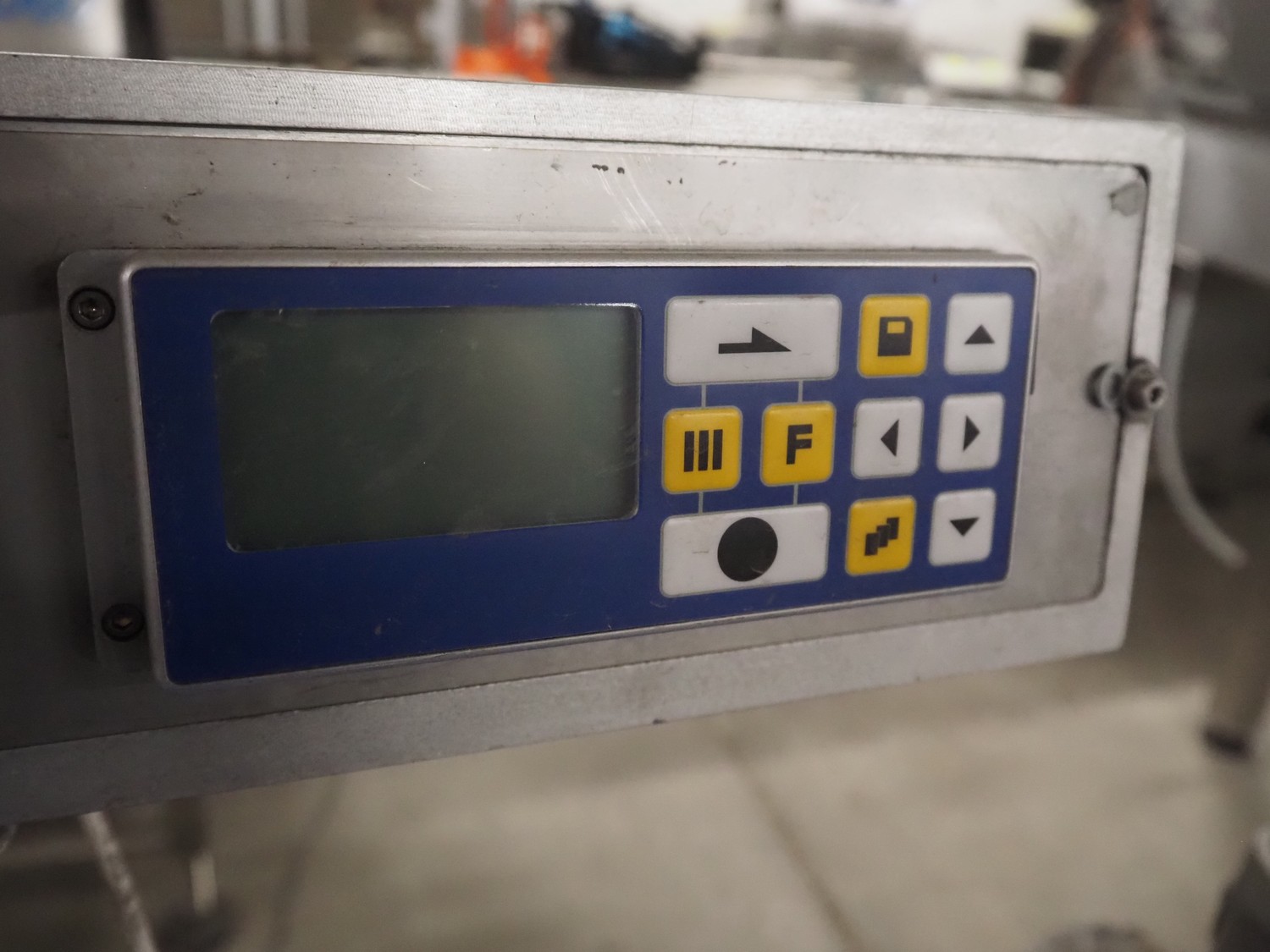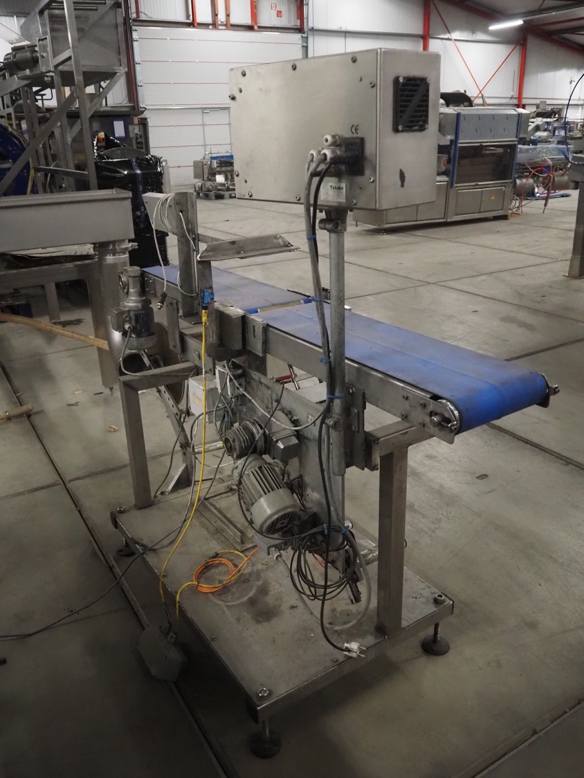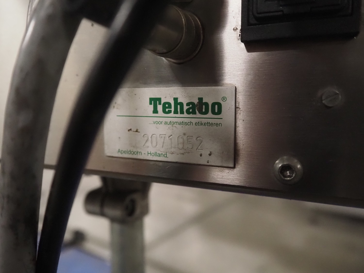 Tehabo labelling machine, plastic belt, belt width: 240 mm, total dimensions: 1700 mm x 550 mm x 1560 mm.