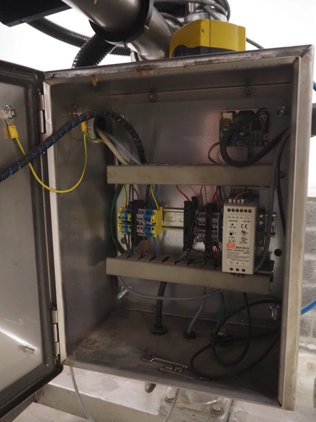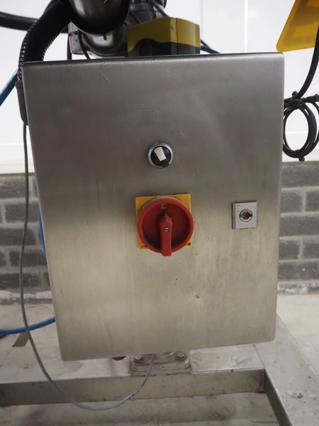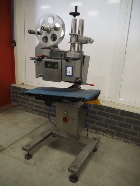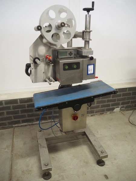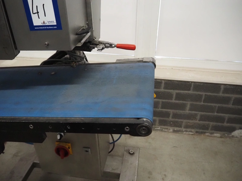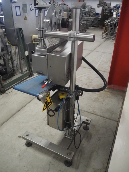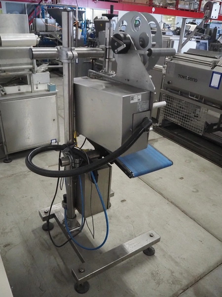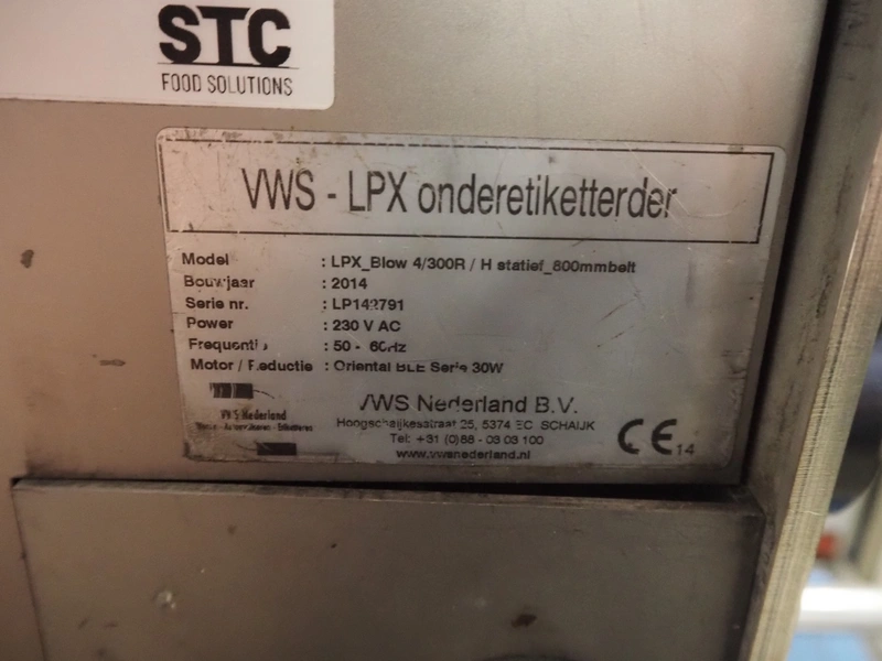 VWS Nederland B.V. labelling machine, model: LPX_Blow 4/300R/H statief_800mmbelt, serial number: LP142791, year of construction: 2014, 230 V, 50-60 Hz, plastic belt, belt width: 300 mm, total dimensions: 750 mm x 800 mm x 1750 mm.