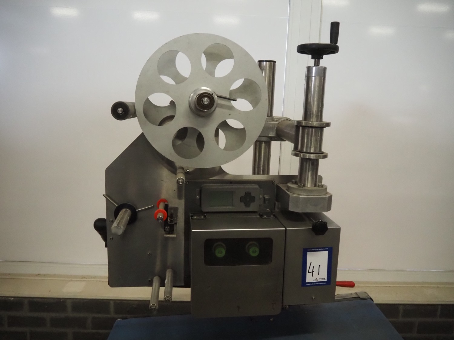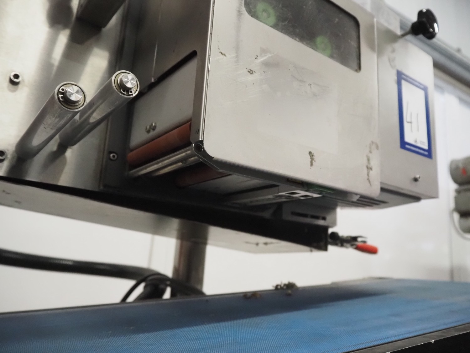 VWS Nederland B.V. labelling machine, model: LPX_Blow 4/300R/H statief_800mmbelt, serial number: LP142791, year of construction: 2014, 230 V, 50-60 Hz, plastic belt, belt width: 300 mm, total dimensions: 750 mm x 800 mm x 1750 mm.