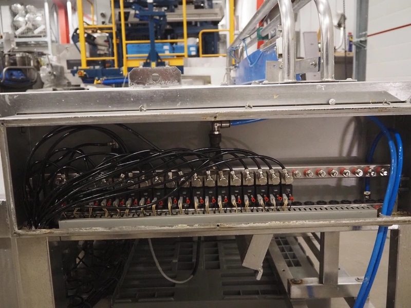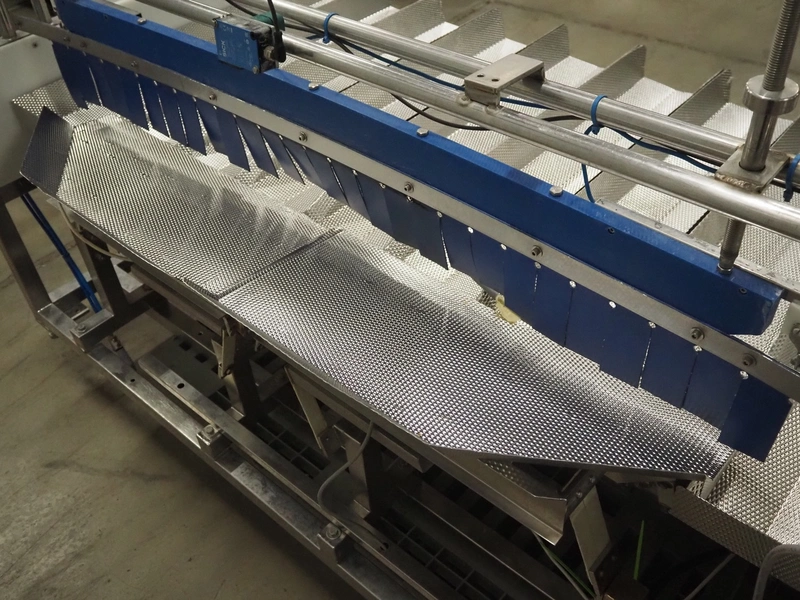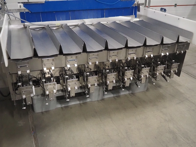 Newtec linear weigher, 9 lanes, lane width: (9x) 160 mm, total dimensions: 1970 mm x 1100 mm x 1120 mm. Including pallet with bins, dimensions pallet: 1200 mm x 800 mm x 550 mm.