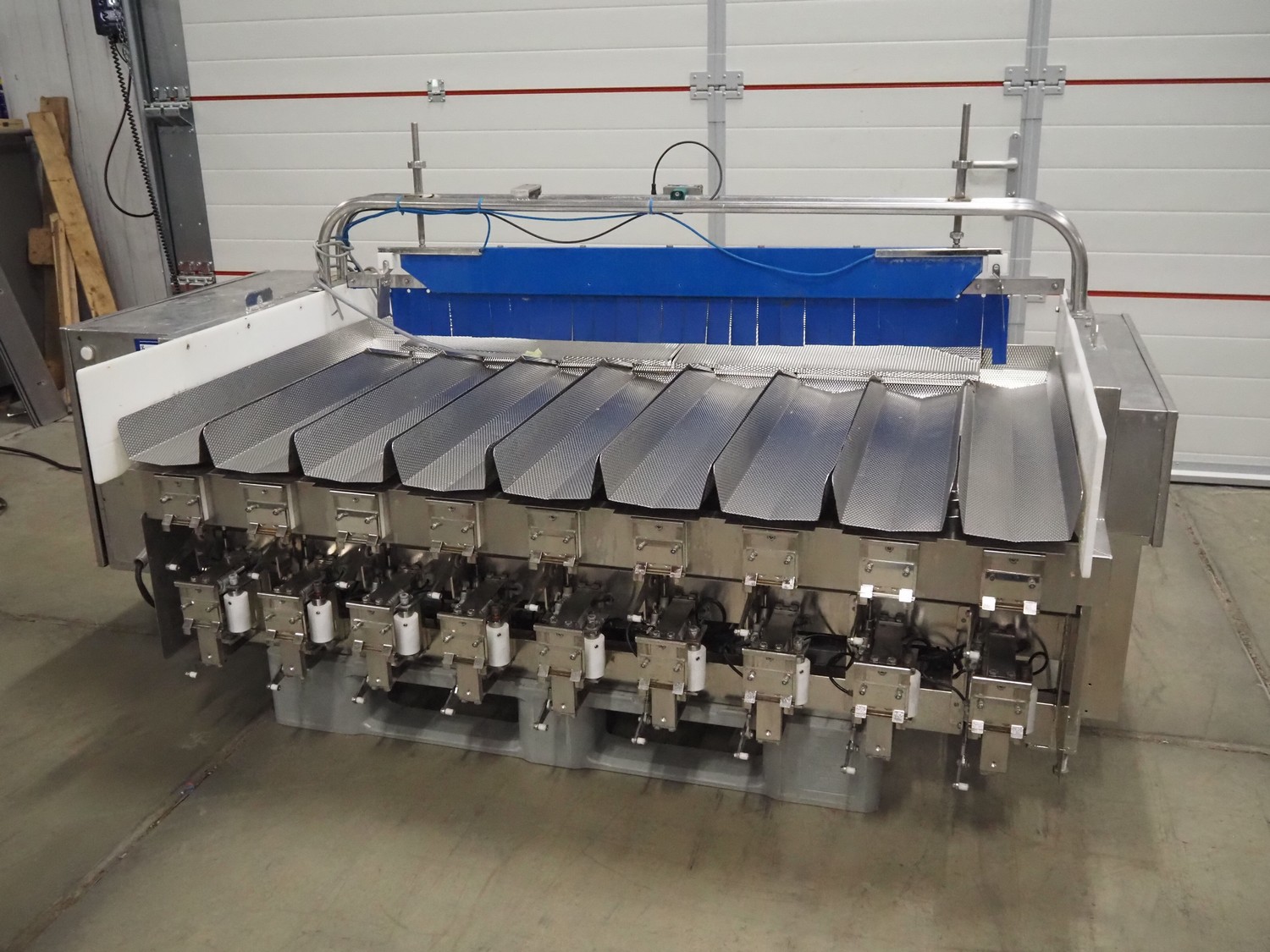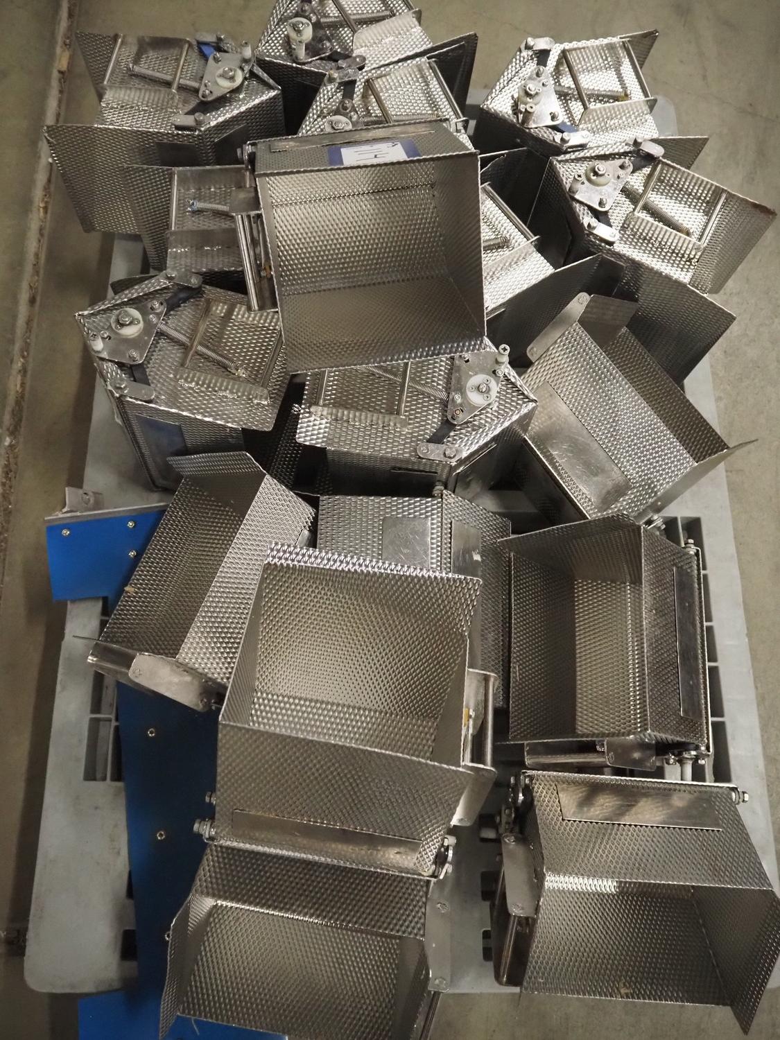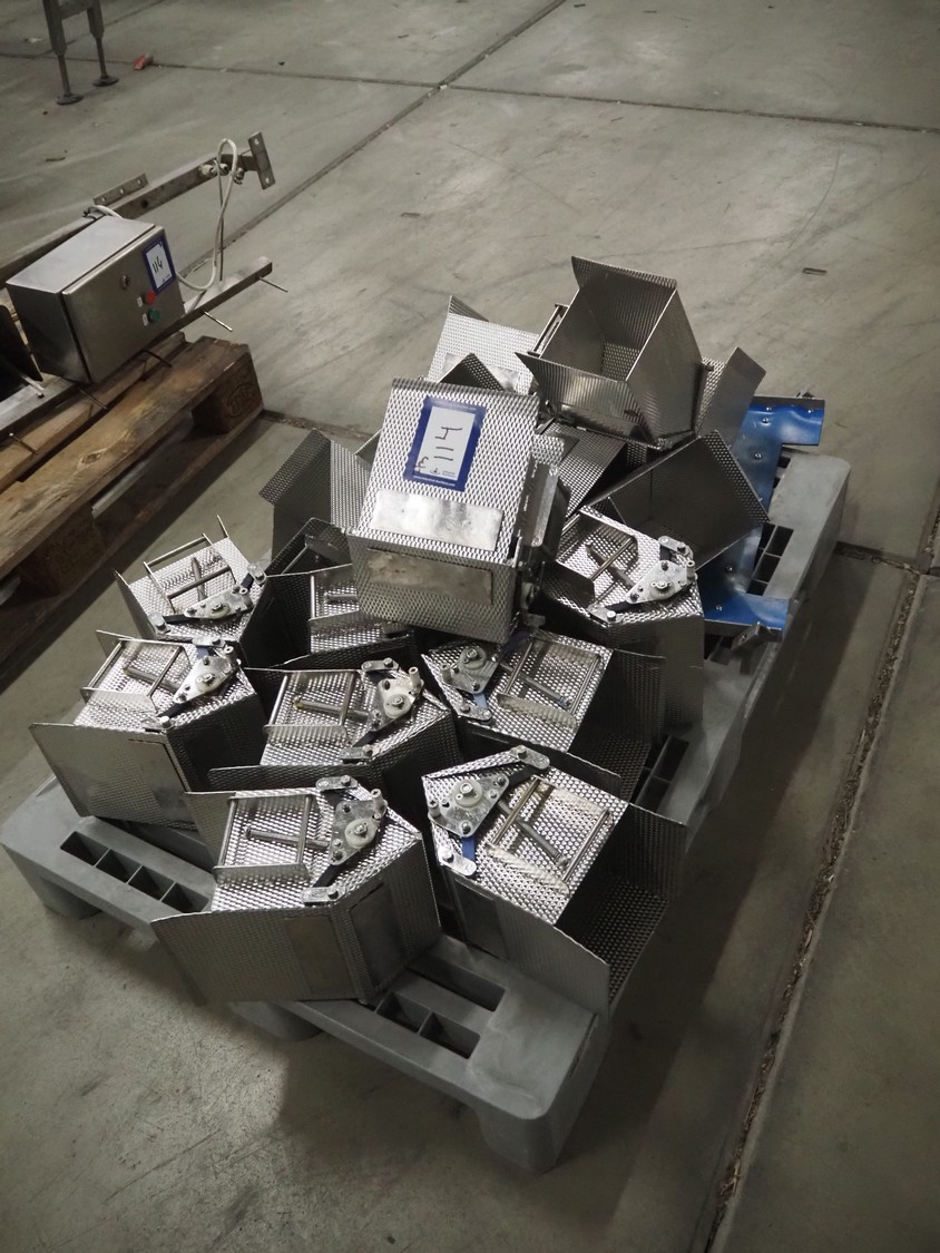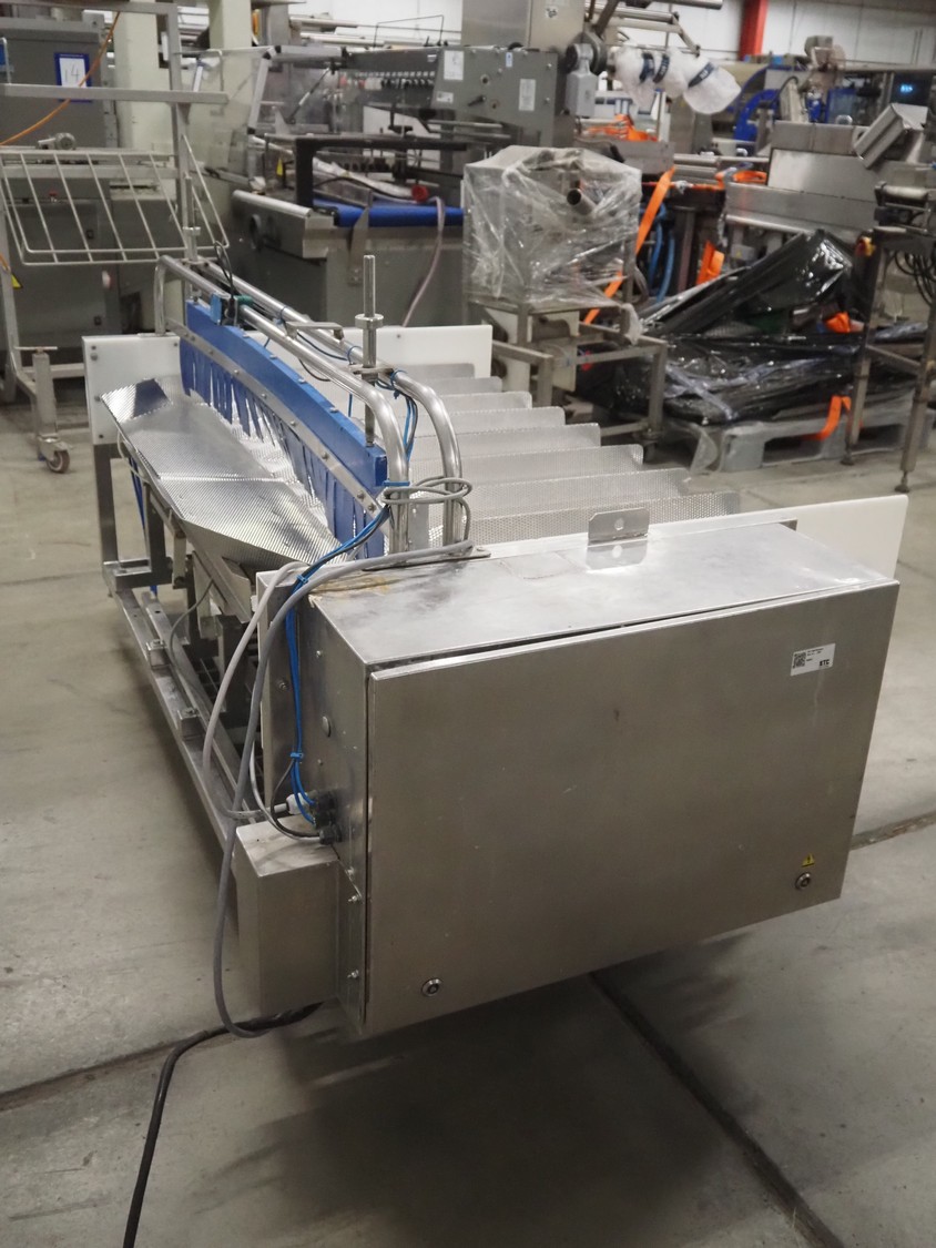 Newtec linear weigher, 9 lanes, lane width: (9x) 160 mm, total dimensions: 1970 mm x 1100 mm x 1120 mm. Including pallet with bins, dimensions pallet: 1200 mm x 800 mm x 550 mm.