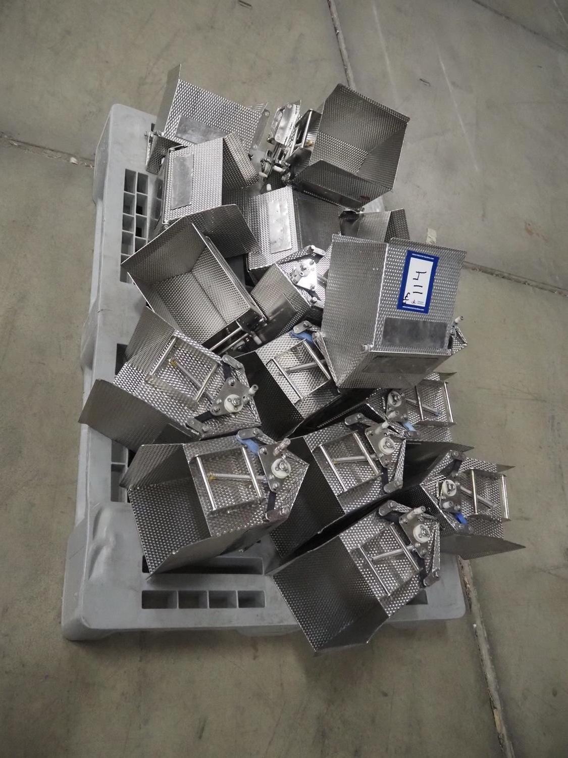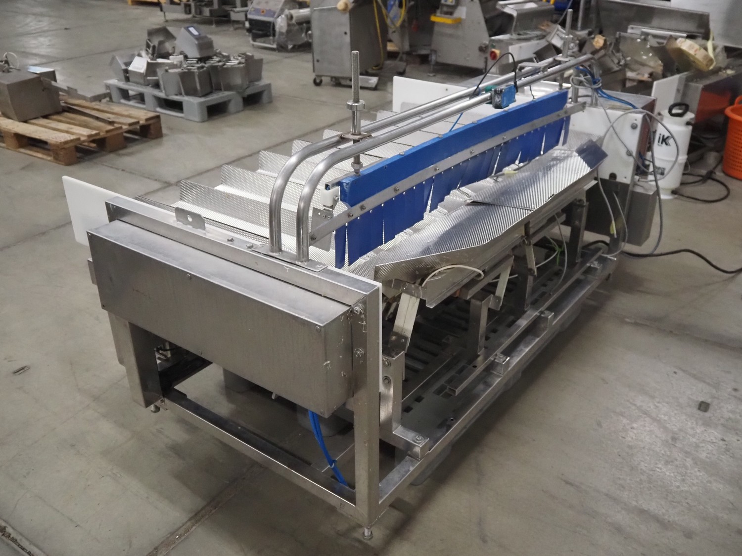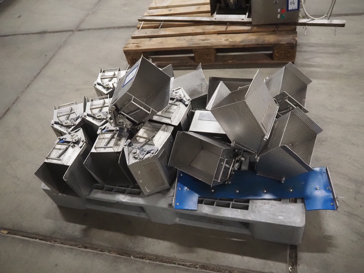 Newtec linear weigher, 9 lanes, lane width: (9x) 160 mm, total dimensions: 1970 mm x 1100 mm x 1120 mm. Including pallet with bins, dimensions pallet: 1200 mm x 800 mm x 550 mm.