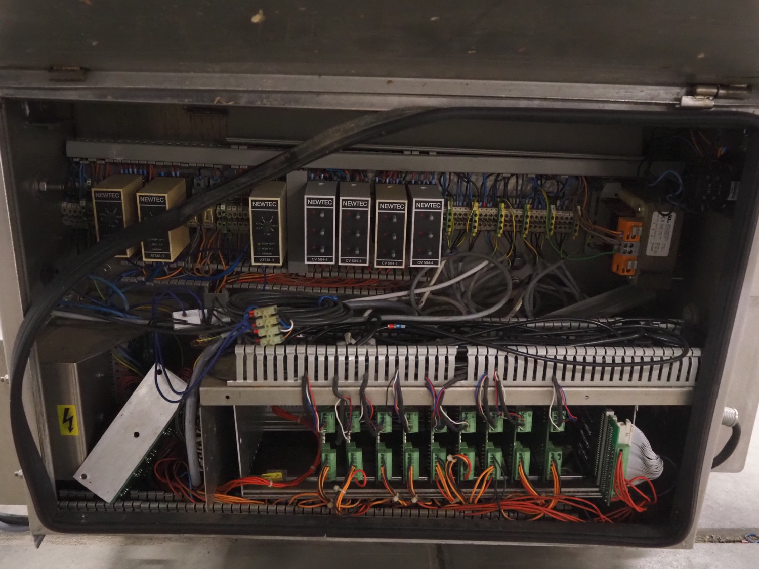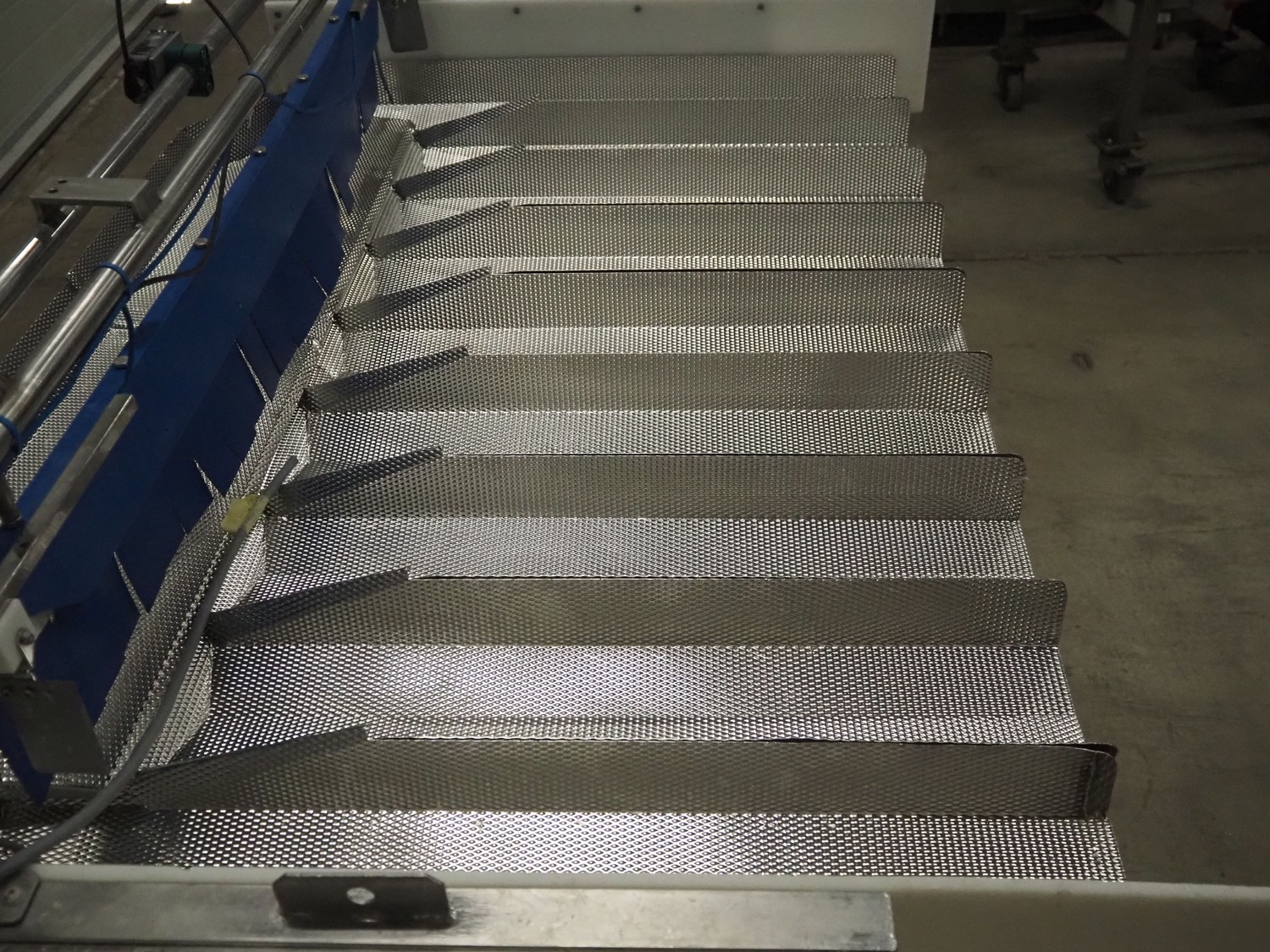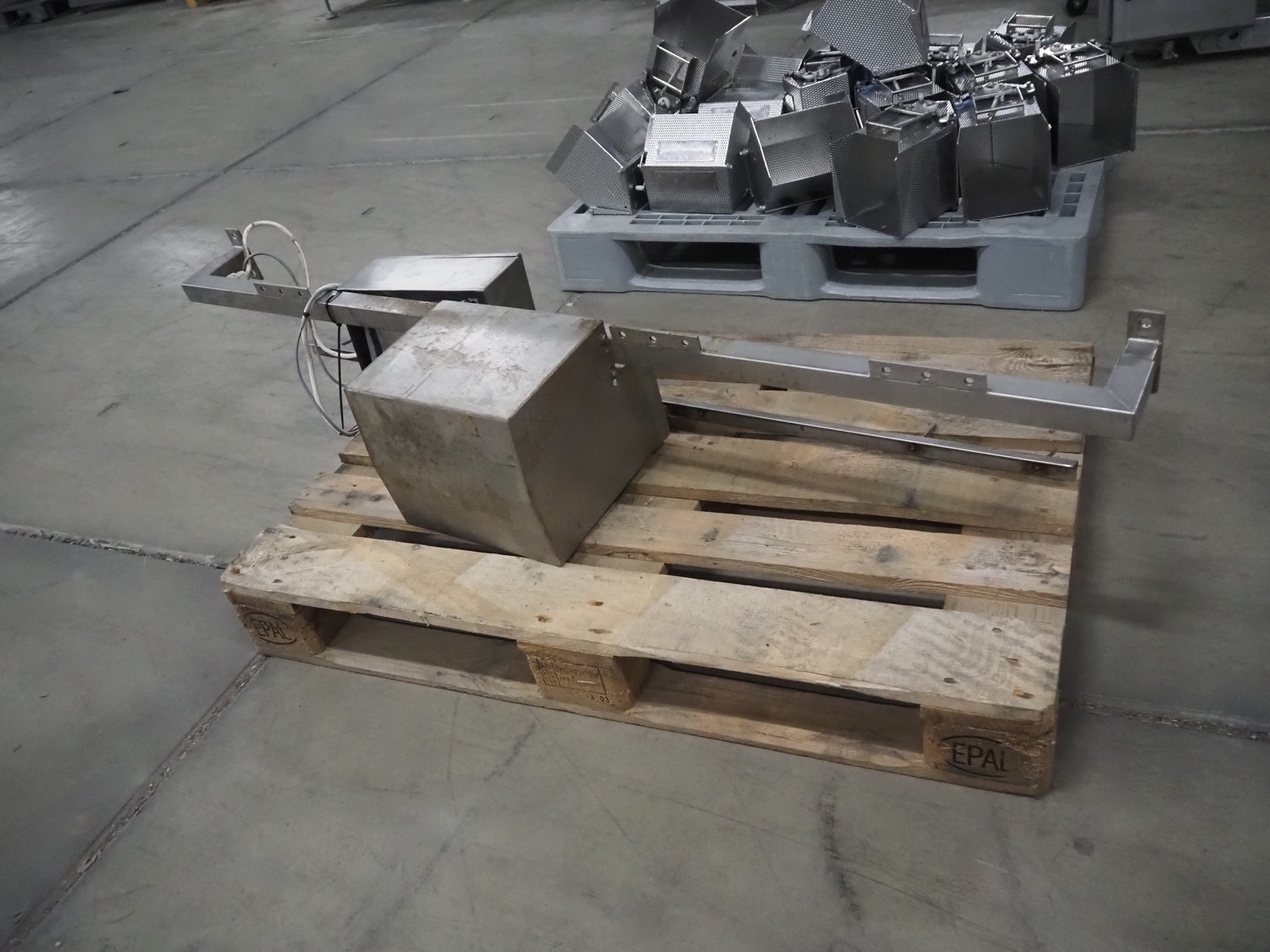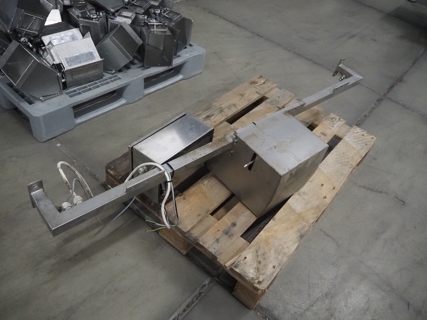 Newtec linear weigher, 9 lanes, lane width: (9x) 160 mm, total dimensions: 1970 mm x 1100 mm x 1120 mm. Including pallet with bins, dimensions pallet: 1200 mm x 800 mm x 550 mm.