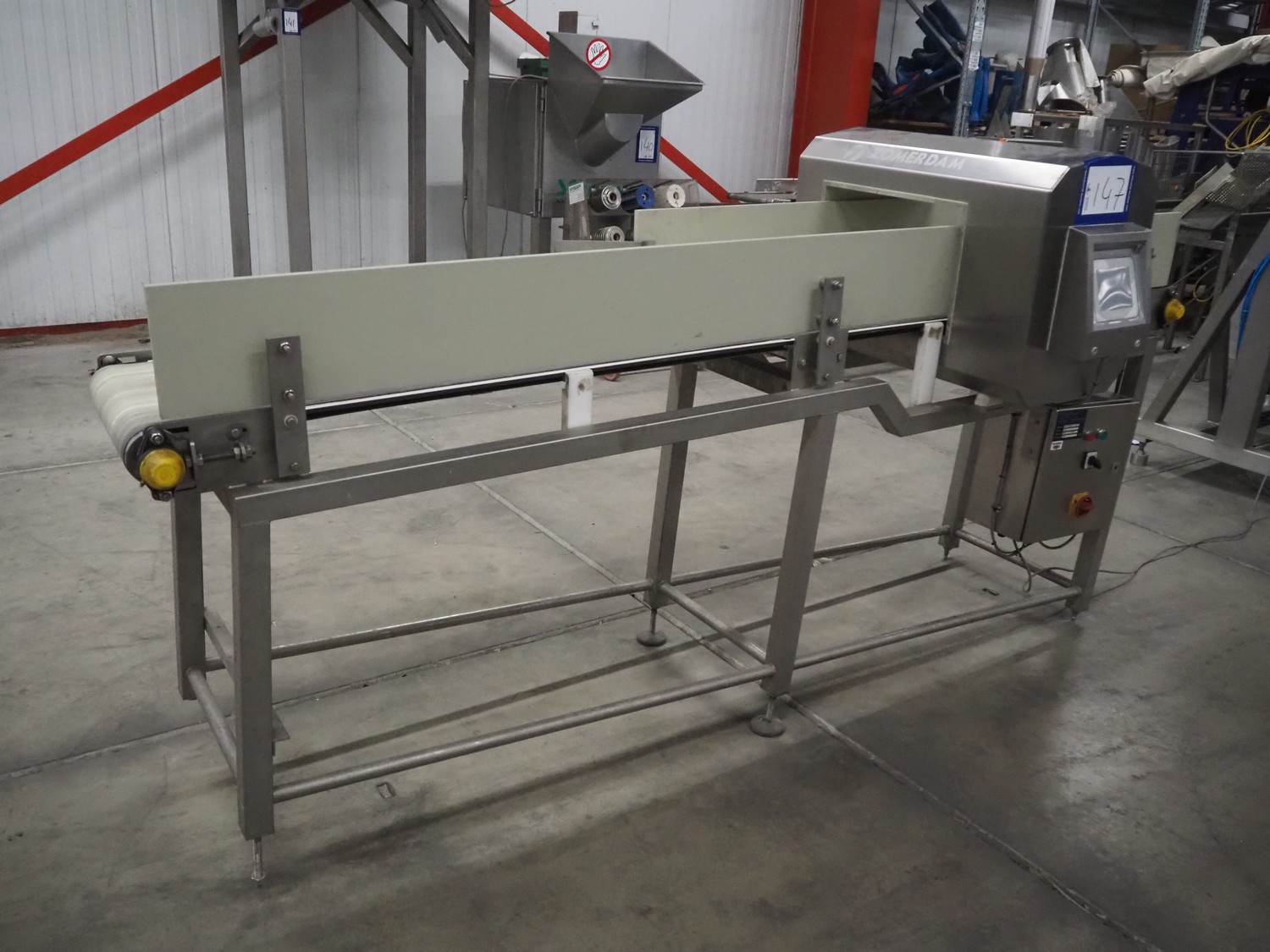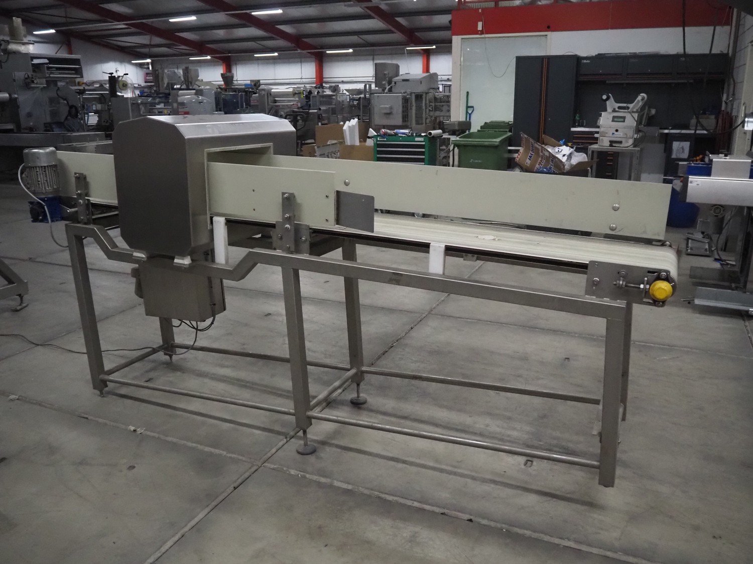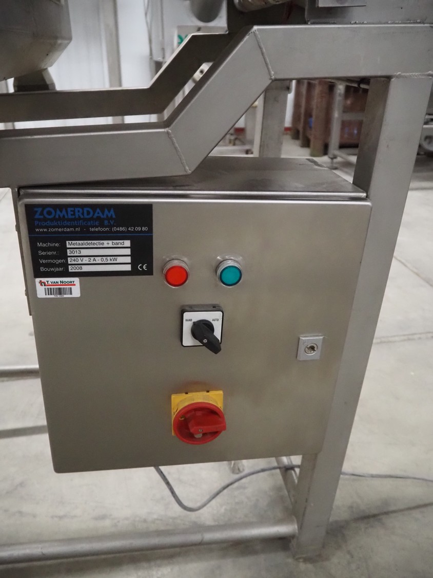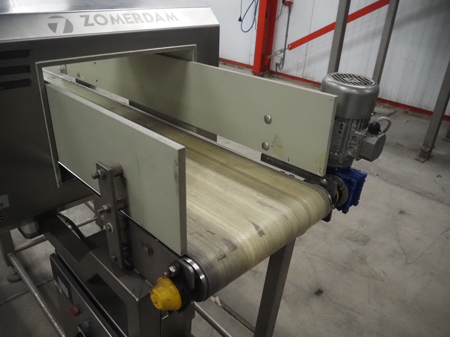 Zomerdam metal detector, type: MN 5.1 CI 450/300, serial number: 920921-CI, 240 V, 50/60 Hz, 2 A, 0.5 kW, plastic belt, belt width: 400 mm, clearance: 350 mm x 260 mm, total dimensions: 2650 mm x 950 mm x 1400 mm.