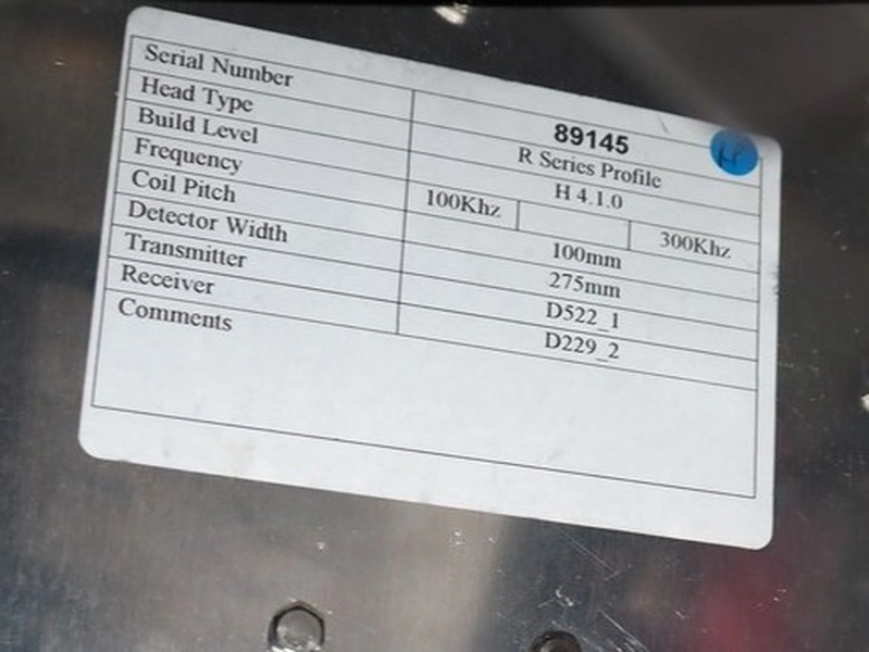 Mettler Toledo / Safeline metal detector head, type: R Series Profile, serial number: 891456, 100-240 V, 50-60 Hz, 340 W, clearance: 300 mm x 175 mm, total dimensions: 830 mm x 280 mm x 420 mm.