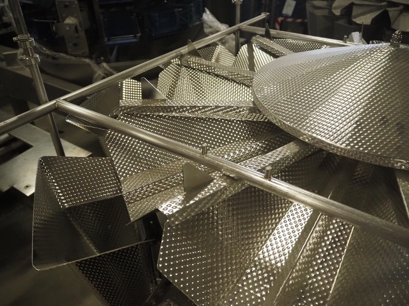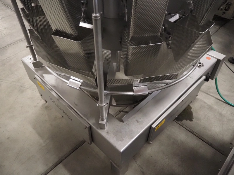 MultiWeigh multihead weigher, type: HDW 10-2.0-60°, serial number: X0760, year of construction: 2014, 230 V, 50 Hz, weighing range: 40-1000 g, dimensions: 1300 mm x 1300 mm x 1800 mm. Incomplete.