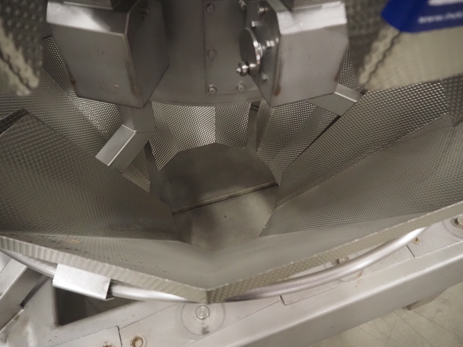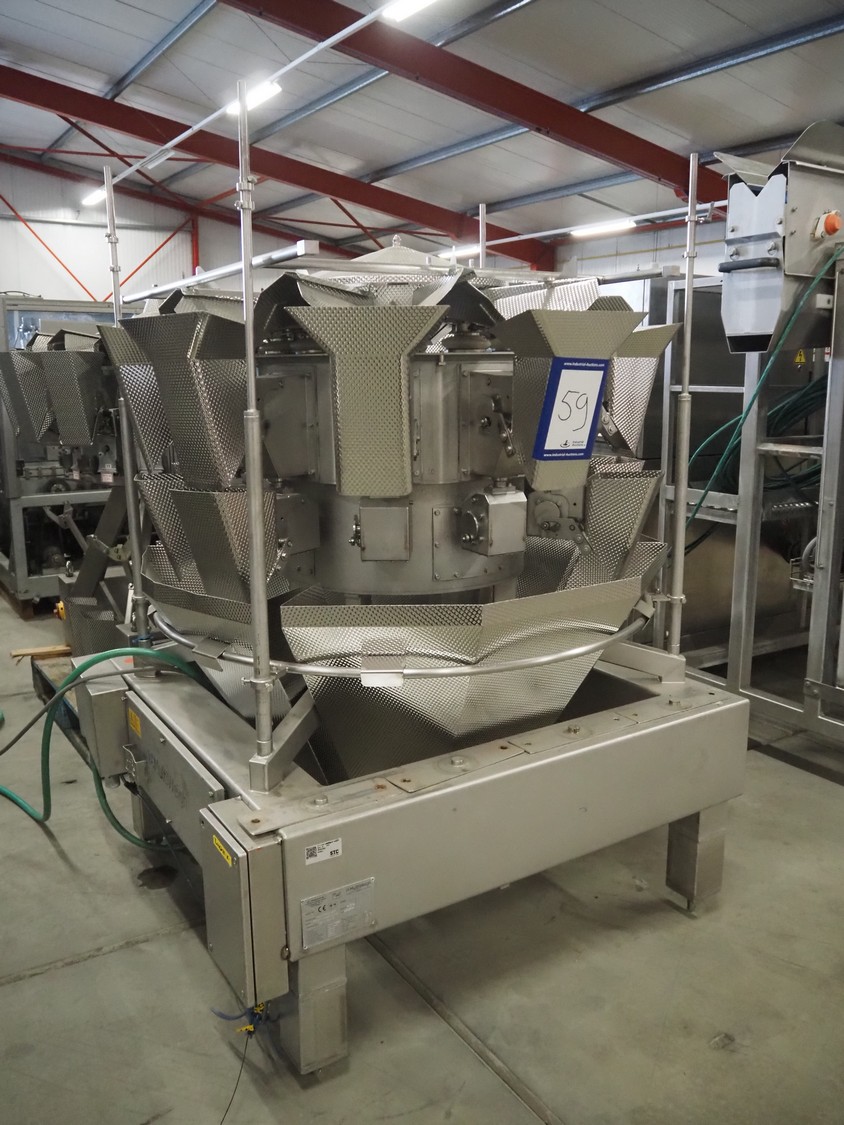 MultiWeigh multihead weigher, type: HDW 10-2.0-60°, serial number: X0760, year of construction: 2014, 230 V, 50 Hz, weighing range: 40-1000 g, dimensions: 1300 mm x 1300 mm x 1800 mm. Incomplete.