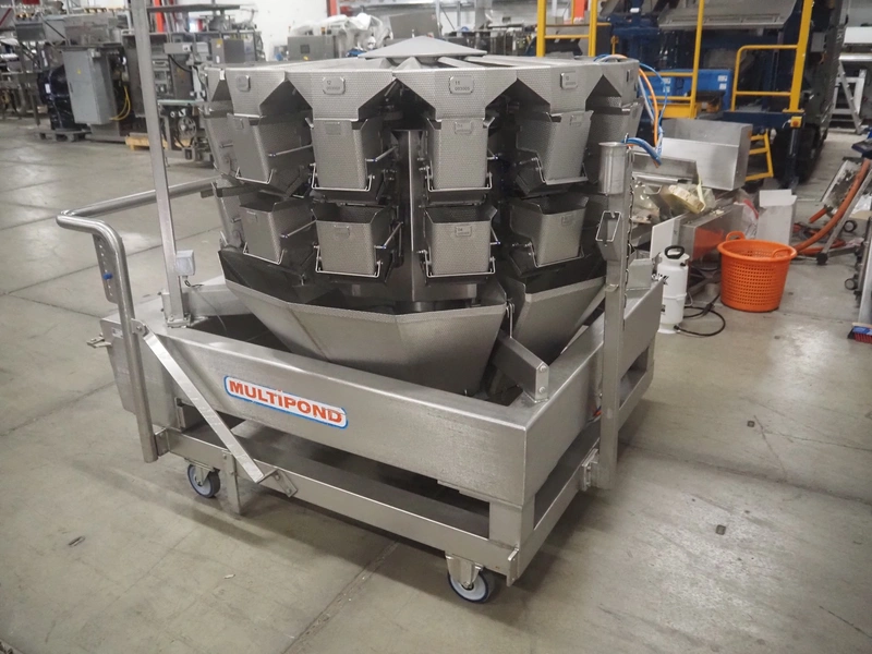 Multipond mobile 14-heads multihead weigher, dimensions: 1850 mm x 1650 mm x 1800 mm.