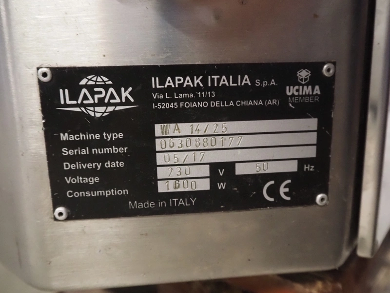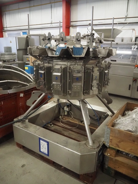 Ilapak 14-heads multihead weigher, type: WA 14/25, serial number: 0630880177, year of construction: 05/17, 230 V, 50 Hz, 1600 W, dimensions: 1250 mm x 1250 mm x 1750 mm. Including pallet and pallet box with parts.