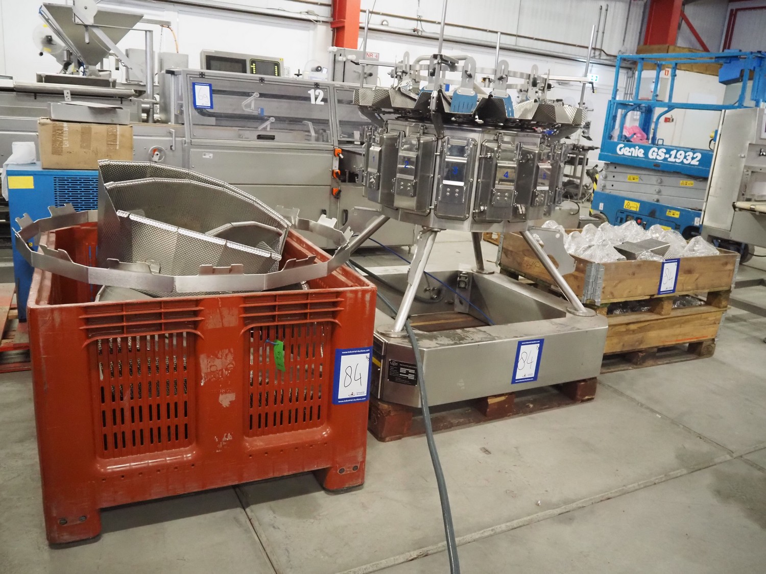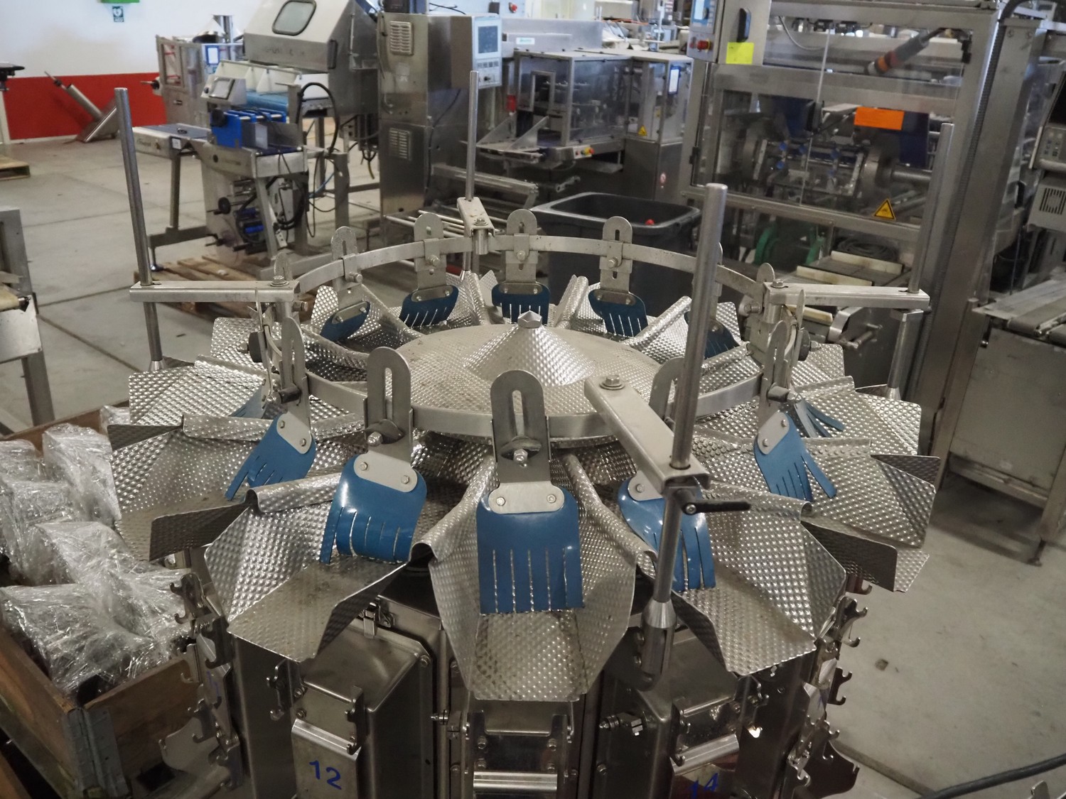 Ilapak 14-heads multihead weigher, type: WA 14/25, serial number: 0630880177, year of construction: 05/17, 230 V, 50 Hz, 1600 W, dimensions: 1250 mm x 1250 mm x 1750 mm. Including pallet and pallet box with parts.