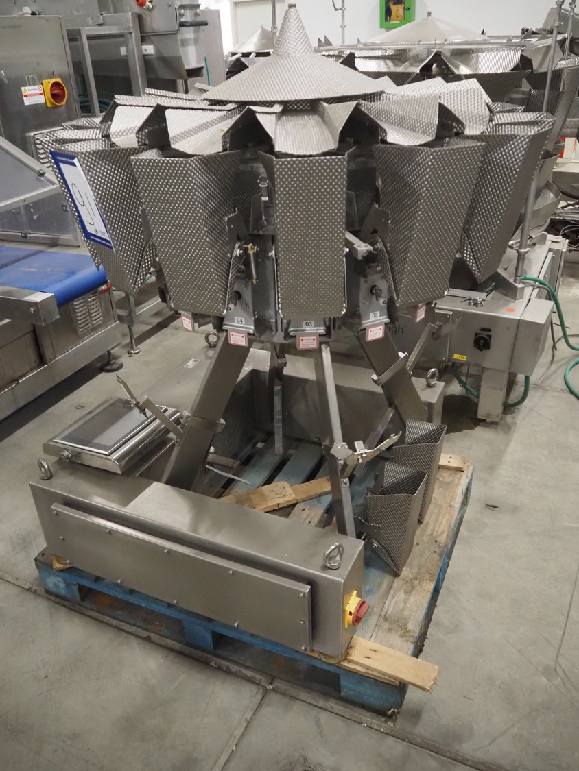 Multiweigh multihead weigher, 14-heads, dimensions: 1100 mm x 1110 mm x 1470 mm. Incomplete.
