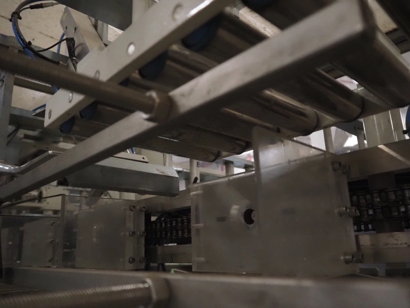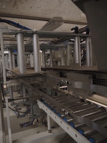 Betti S.r.l. packaging machine used for potatoes, machine model: NB/70/24-W.DX, serial number: 2040, 400 V, 3 Ph, 50 Hz, 18 A, s/s rollers, roller width: 215 mm and 225 mm, chain belt with dividers, divider height: 120 mm, distance between dividers: 370 mm, total dimensions: 6250 mm x 1700 mm x 2080 mm.